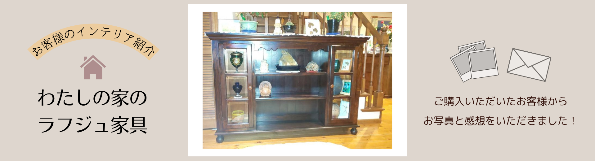 「既に我が家の玄関に馴染んでいます。」とのお言葉に、ラフジュ工房も大変嬉しく思います。k-miri様のご自宅の温かみのある雰囲気にもよくマッチし、ご家族やお客様を迎える玄関の顔として活躍しくてくれる事間違いなしですよ!今後、サイドキャビネットがk-miri様の暮らしに潤いをもたらす存在となります事、スタッフ一同心より願っております。