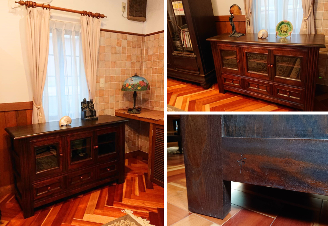 古い机の代わりに置く家具を探していて、この松本民芸家具のサイドボードに廻り合いました。