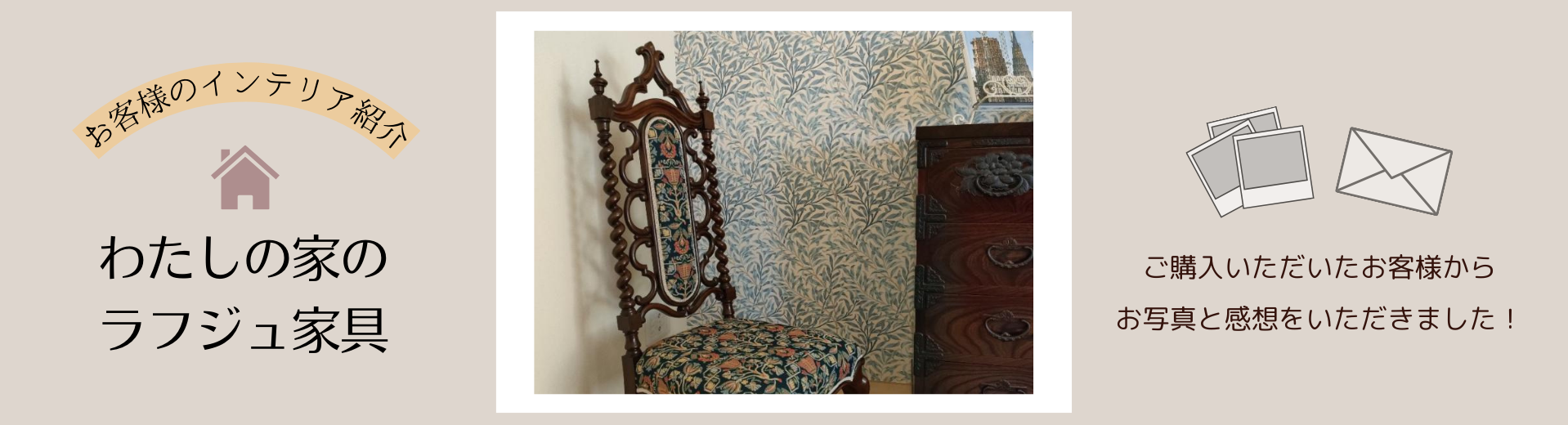 この度はラフジュ工房にて、イギリスアンティークのチェアをご購入いただき誠にありがとうございます。