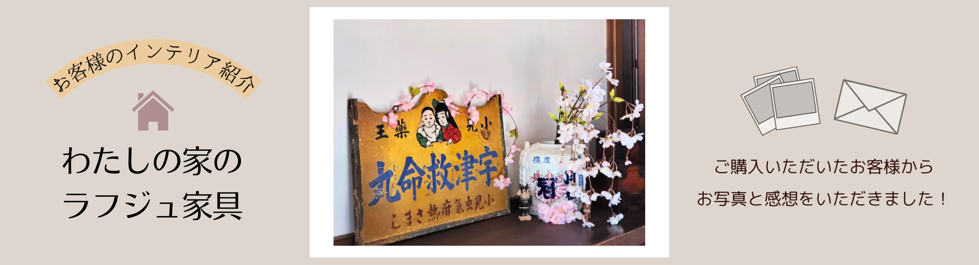この度はラフジュ工房にて、看板付き片袖机・松本帳場箪笥・庄内小引き出し・医薬品の看板・ノベルティグッズをご購入いただき誠にありがとうございます。