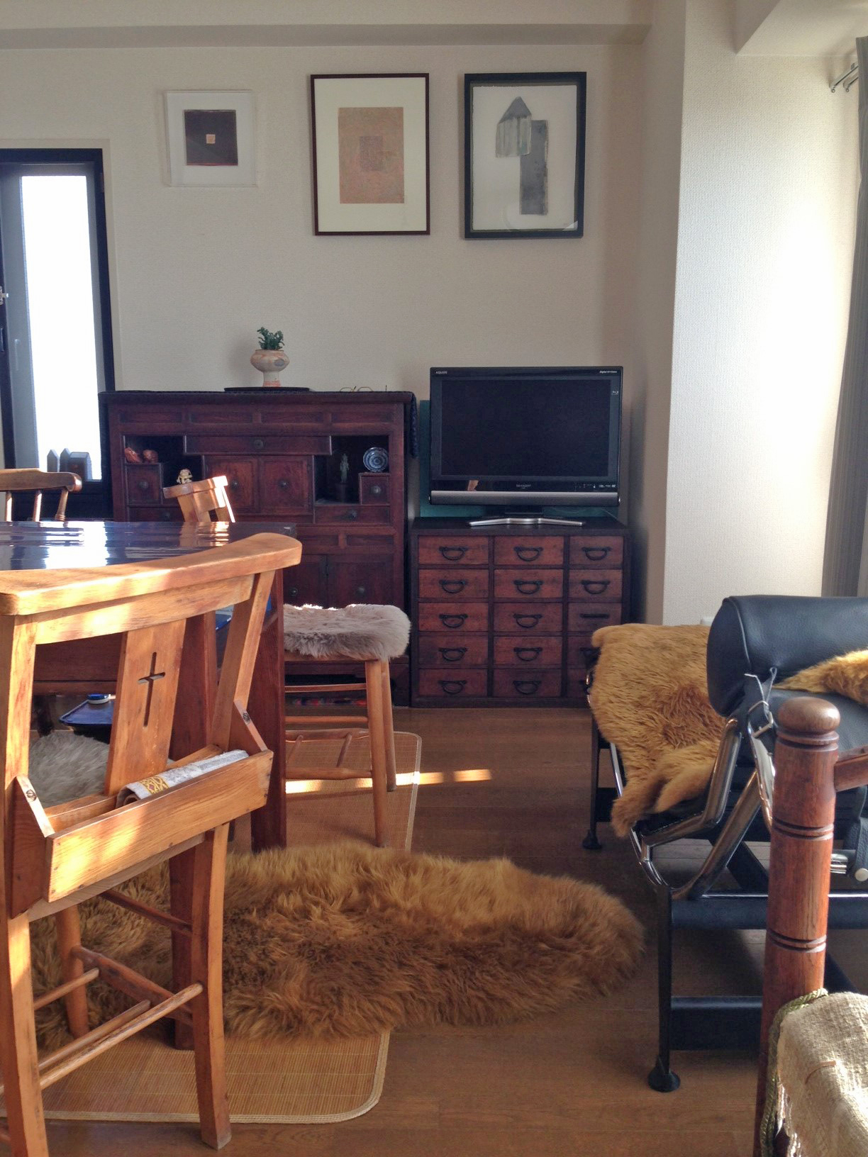 味のある李朝の棚をはじめ、お部屋全体が木の温もりとモダンな空気に包まれていて大変素敵です!