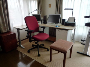 オットマン代わりにして、作業の合間にのんびり読書です。