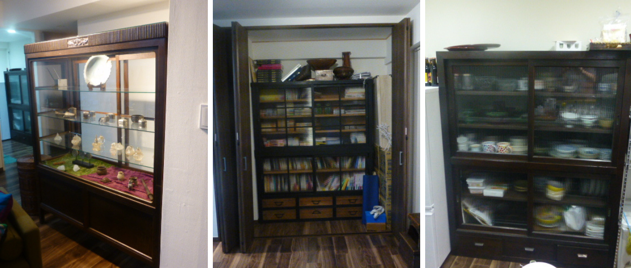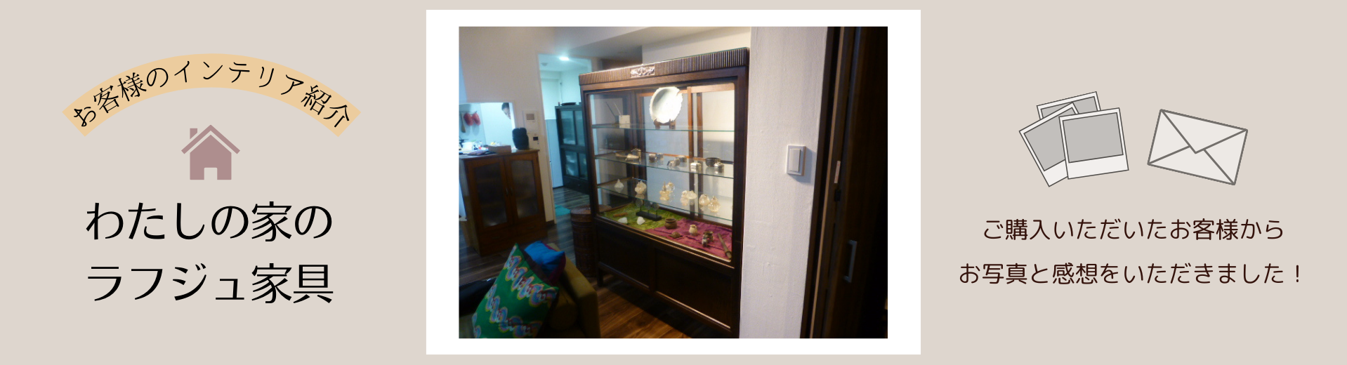 この度はラフジュ工房の和製アンティーク収納棚・食器棚・ガラスケースをご購入いただき誠にありがとうございます。