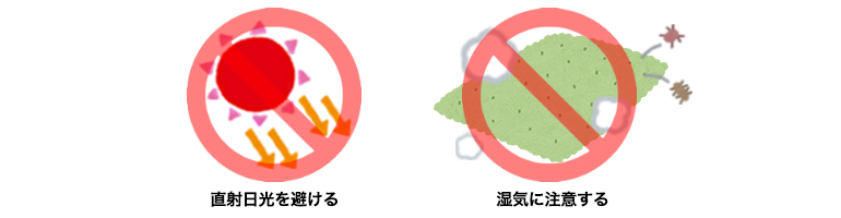 1. 直射日光と湿気には要注意