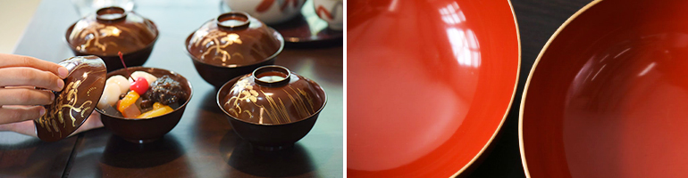 先述した木製食器の塗装の一種でもある漆塗。強力な塗膜で保護されていますが、こちらも直射日光や長時間の浸け置きは避けてください。