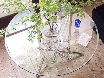 〈ガラス製テーブル〉