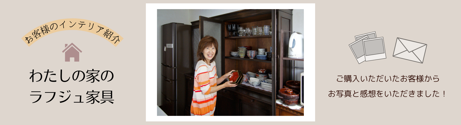 「扉はすりガラスなのでごちゃごちゃと食器の色が透けて見えないんです。理想の棚に出会えました。」と満足そうな武吉さま。