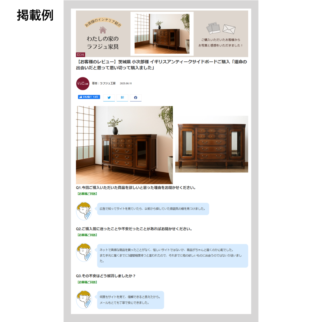 ※ご応募いただいたアンケートやお写真は、ラフジュ工房のWebコンテンツ「お客様の声」へ掲載させていただく場合がございます。
