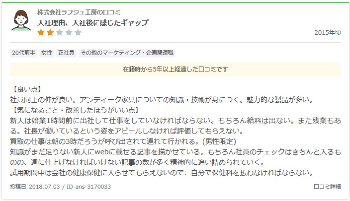 今回ご紹介するのは、2015年頃在籍していたという女性からの口コミです。
