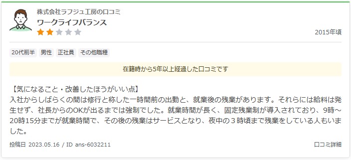 今回ご紹介するのは、2015年頃在籍していたという男性からの口コミです。
