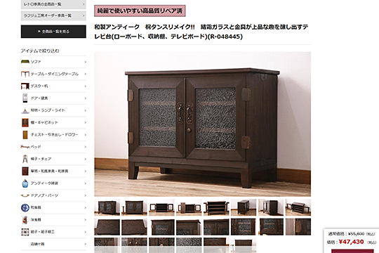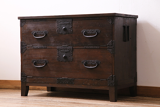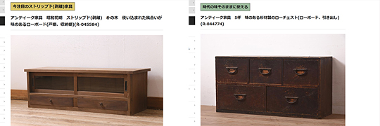 こちらは相馬箪笥を上下段に分けてローボードにした商品。「綺麗で使いやすい高品質リペア済」です。