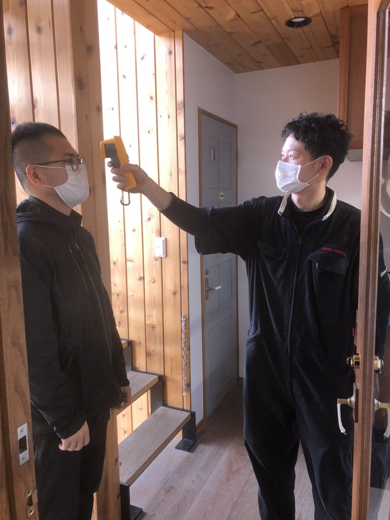 毎朝出勤前に自宅でチェックするという社員も中にはいますが、漏れを防ぐため社員全員に、出勤時の体温チェックに協力してもらっています。