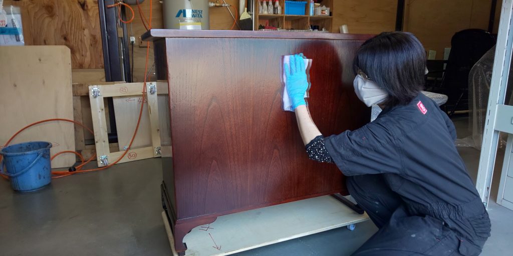 もちろん、除菌をしようと躍起になってせっかく塗ってあるワックスが落ちてしまったり、お客様の大切な家具に万が一のことがあっては本末転倒ですから、それぞれの家具に合わせて消毒作業を行わせていただいております。