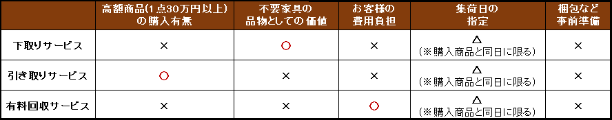 3つの不要家具回収サービス+買取サービス、大事なポイント総まとめ!