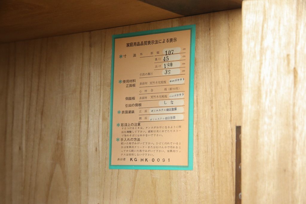 幅:1,060㎜ 奥行:455㎜ 高さ:1,890㎜