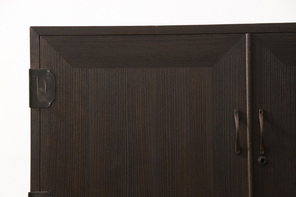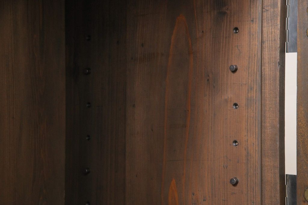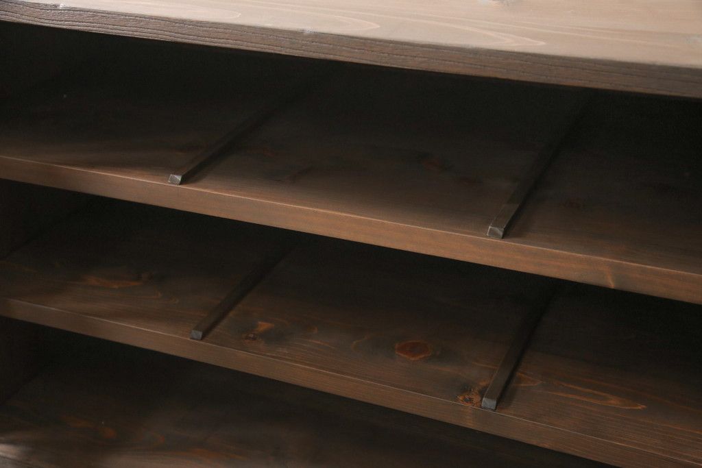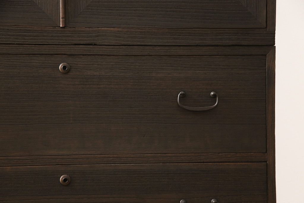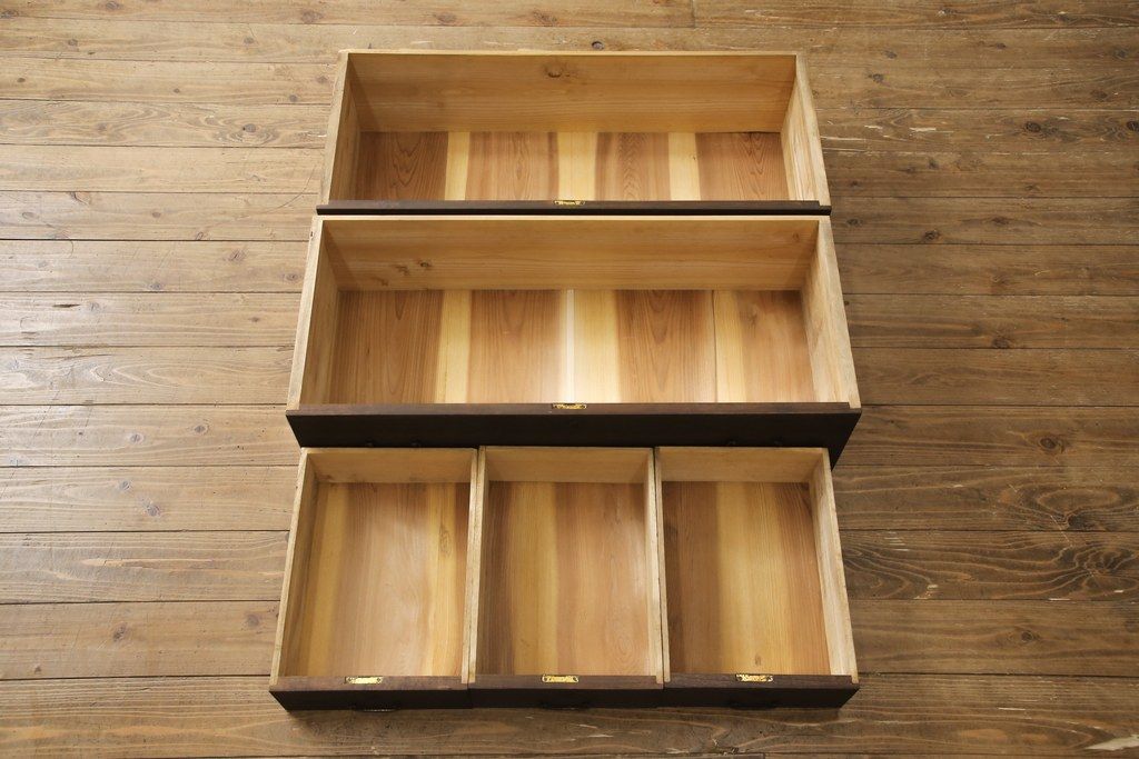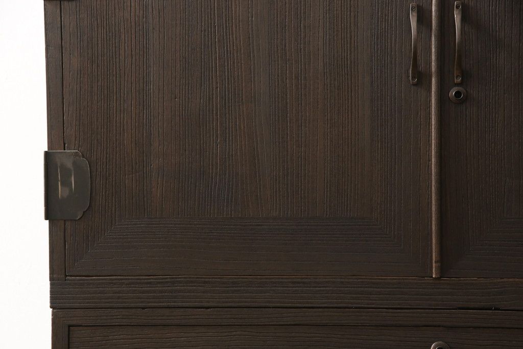 3段重ね桐箪笥をテレビボードと収納箪笥にリメイク!上段は天板を補強しテレビボードに。中段・下段は、観音扉の中に可動式タイプの棚板を設置。どちらもチェスナット系で着色仕上げ。
