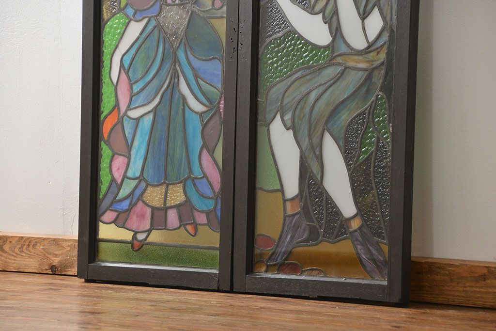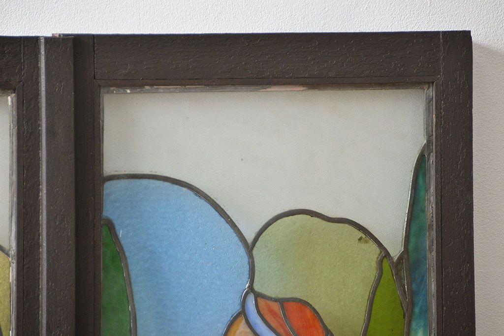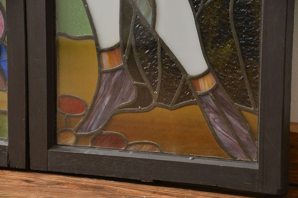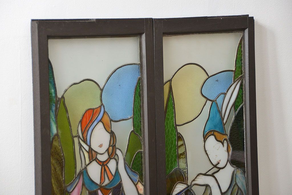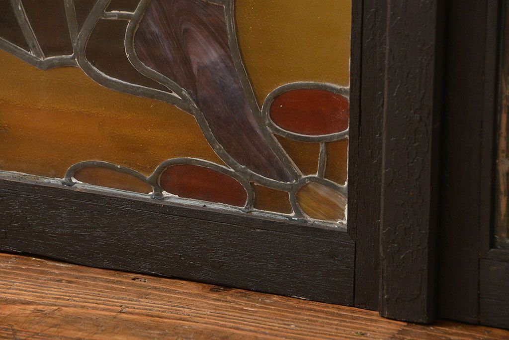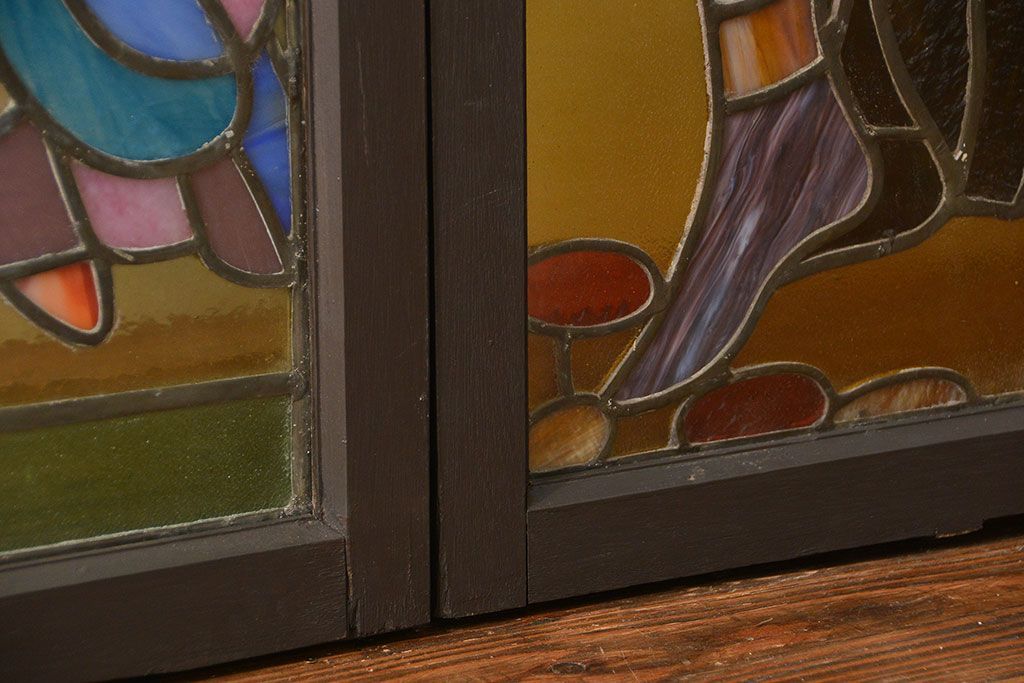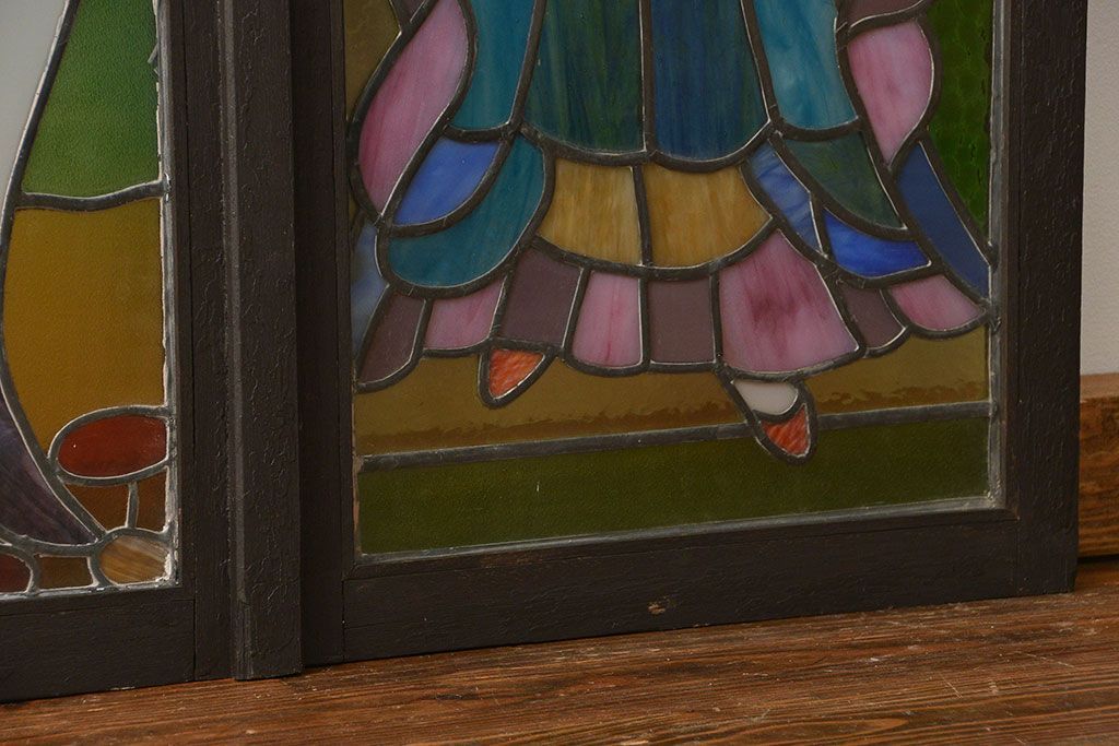 大正ロマン 和製アンティークのステンドグラス窓一対(わずかにヒビ有り)