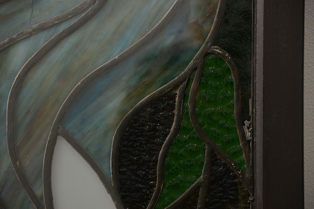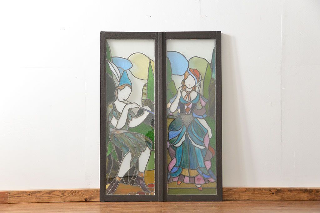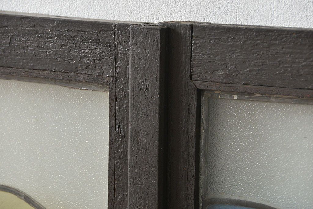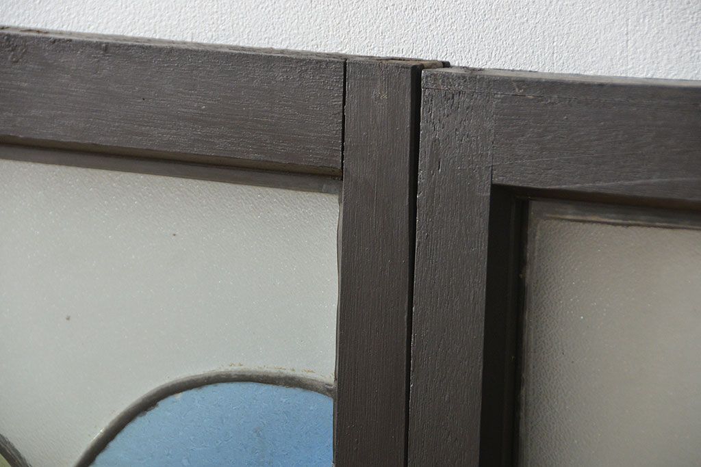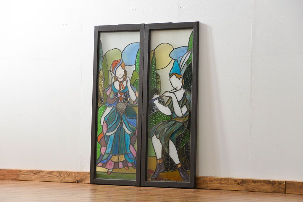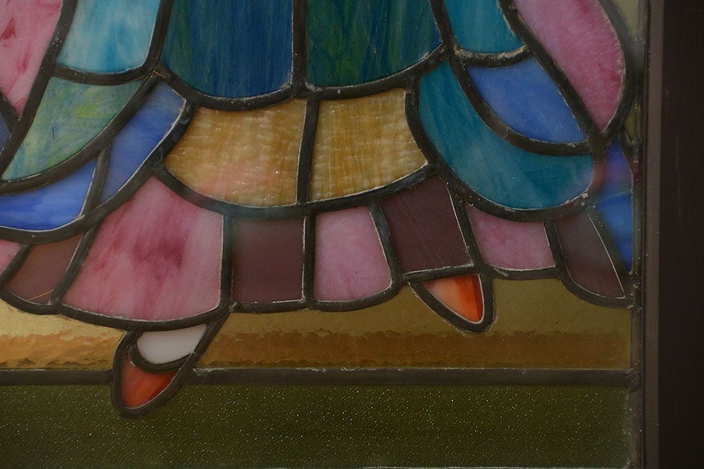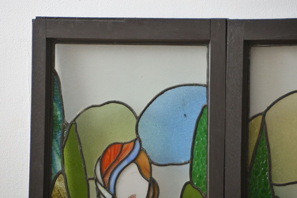 大正ロマン 和製アンティークのステンドグラス窓一対(わずかにヒビ有り)