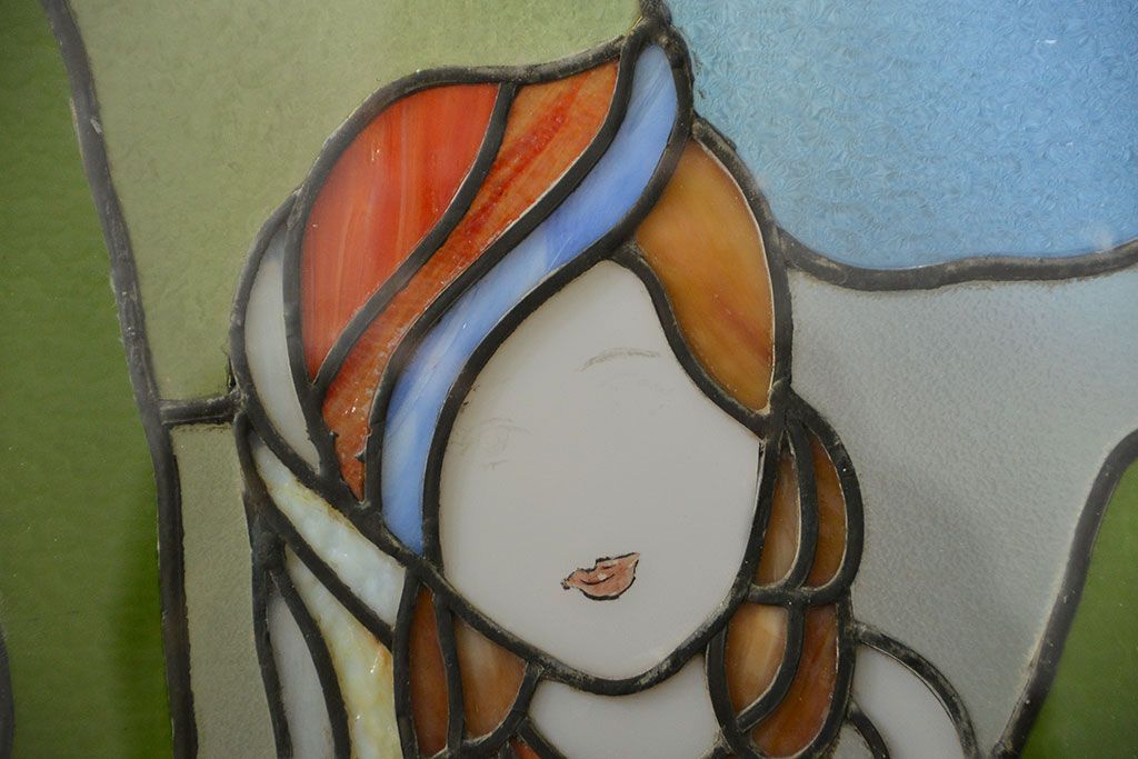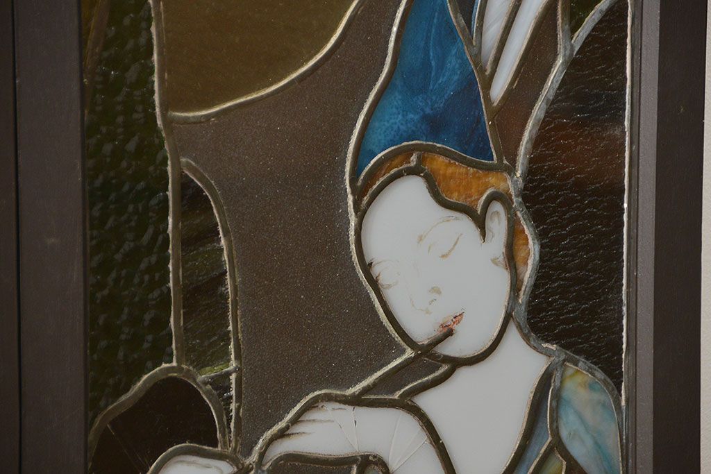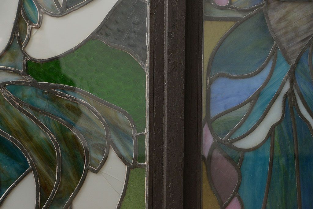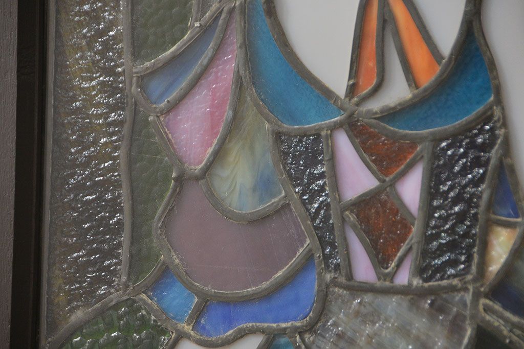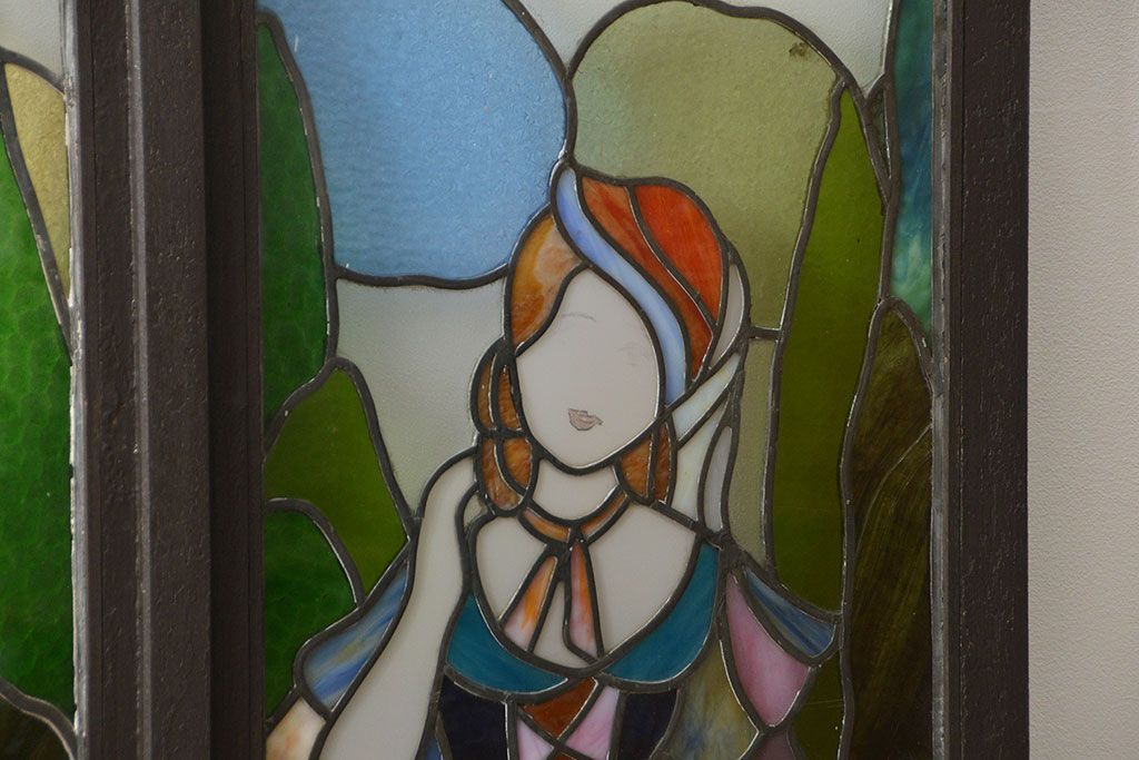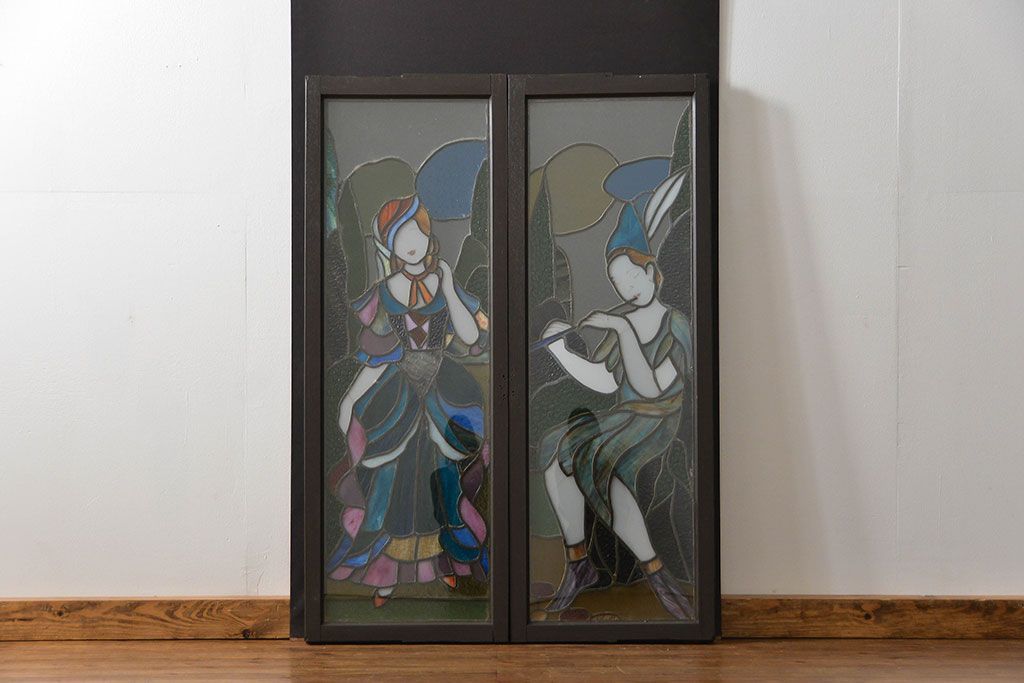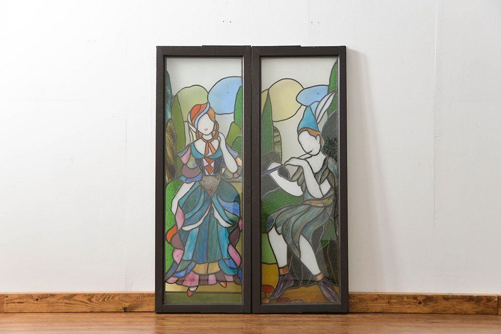 大正ロマン 和製アンティークのステンドグラス窓一対(わずかにヒビ有り)