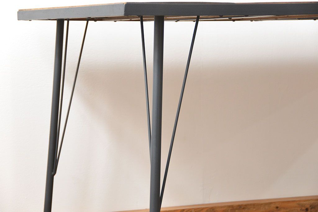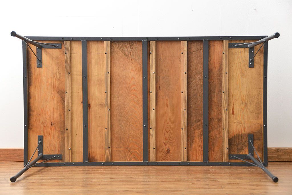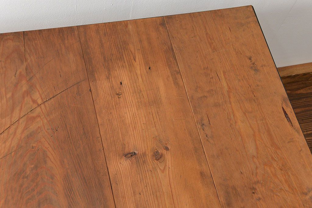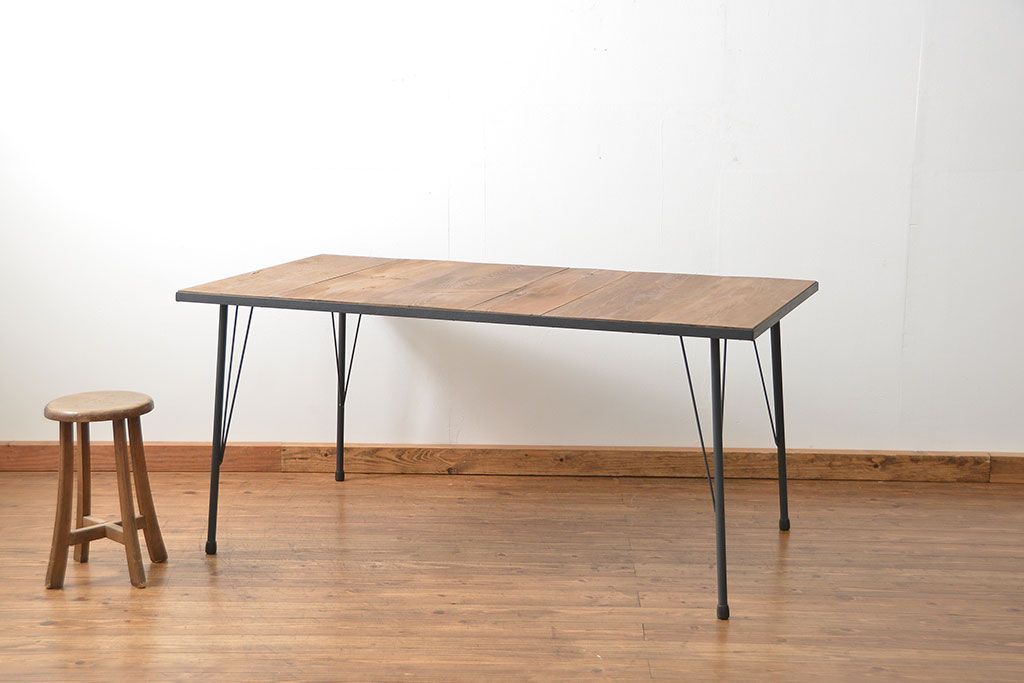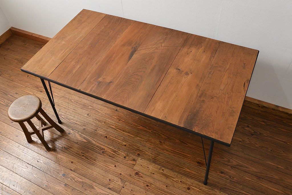 アンティーク家具 アンティーク 古材天板の鉄枠付き鉄脚テーブル(2)(作業台、デスク、陳列台、机、在宅ワーク、在宅用鉄足)