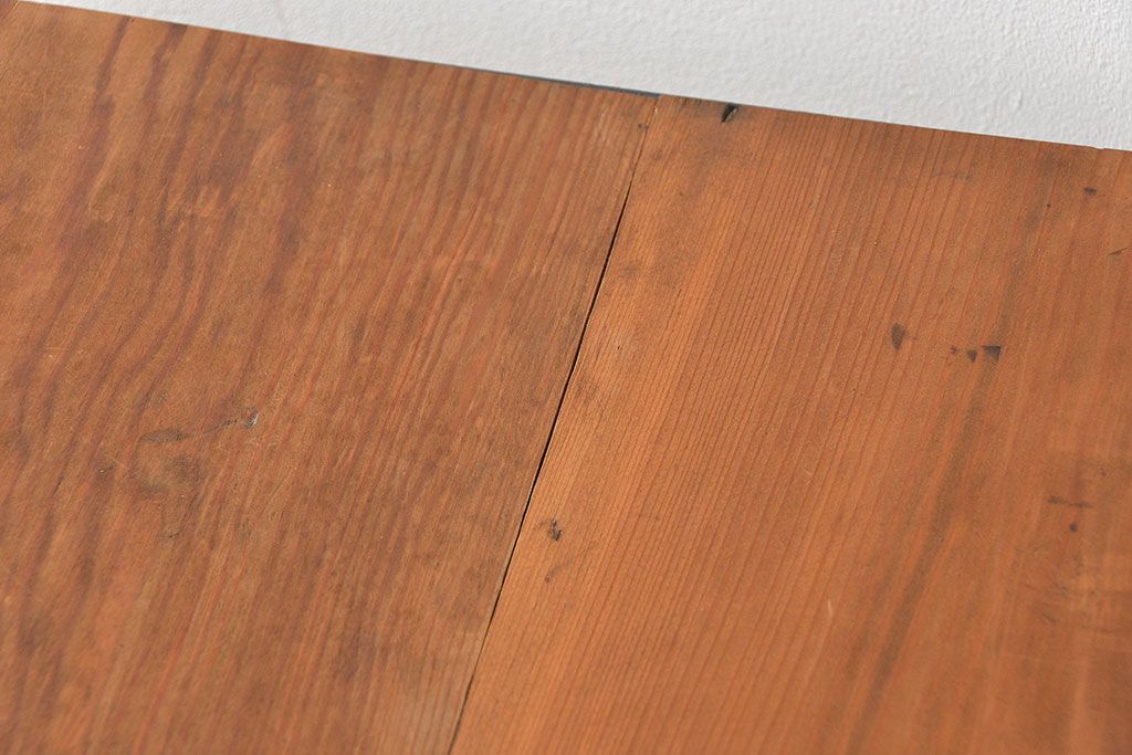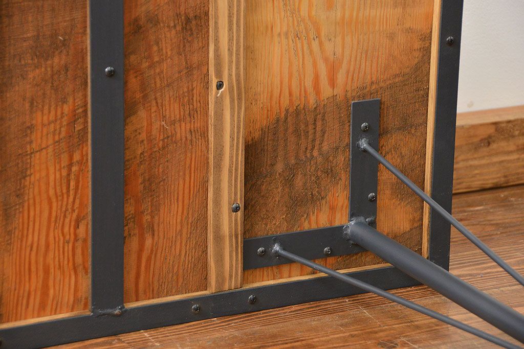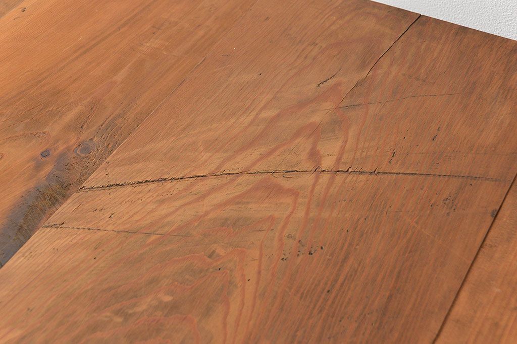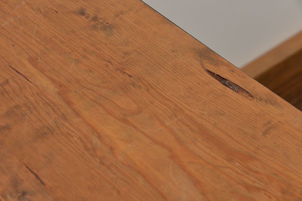画像にありますように天板は古材を使っておりますのでキズ等ありますが、使用上、強度上に問題はありません。