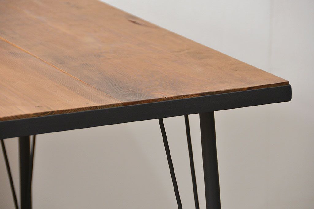 テーブル> 鉄脚テーブル > アンティーク家具 アンティーク 古材天板の鉄枠付き鉄脚テーブル(2)(作業台、デスク、陳列台、机、在宅ワーク、在宅用鉄足)