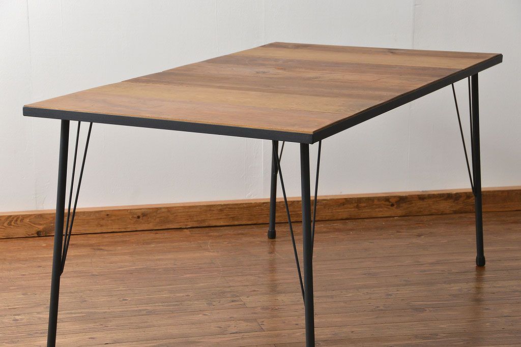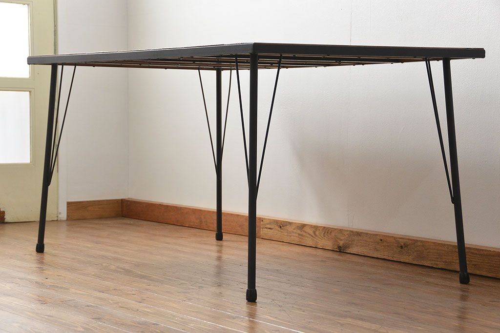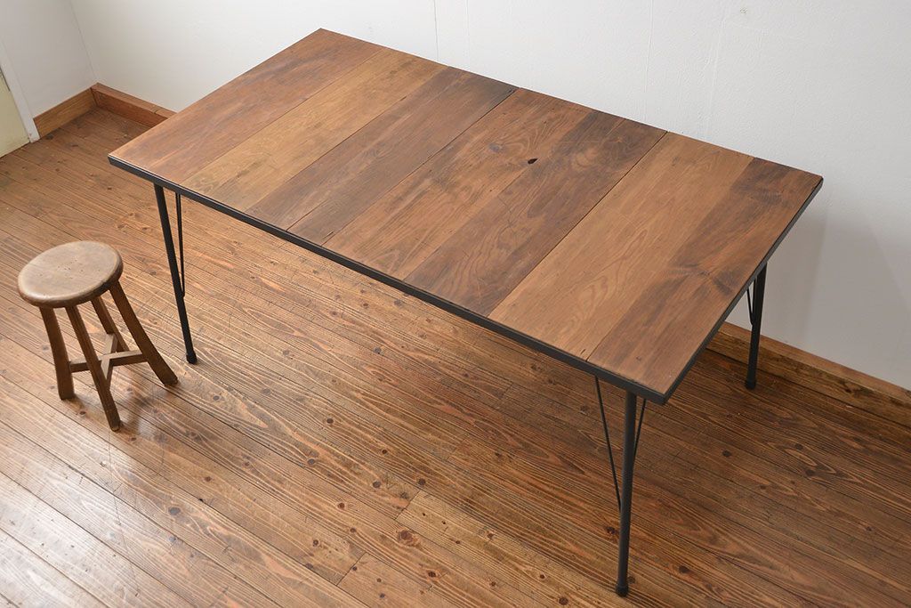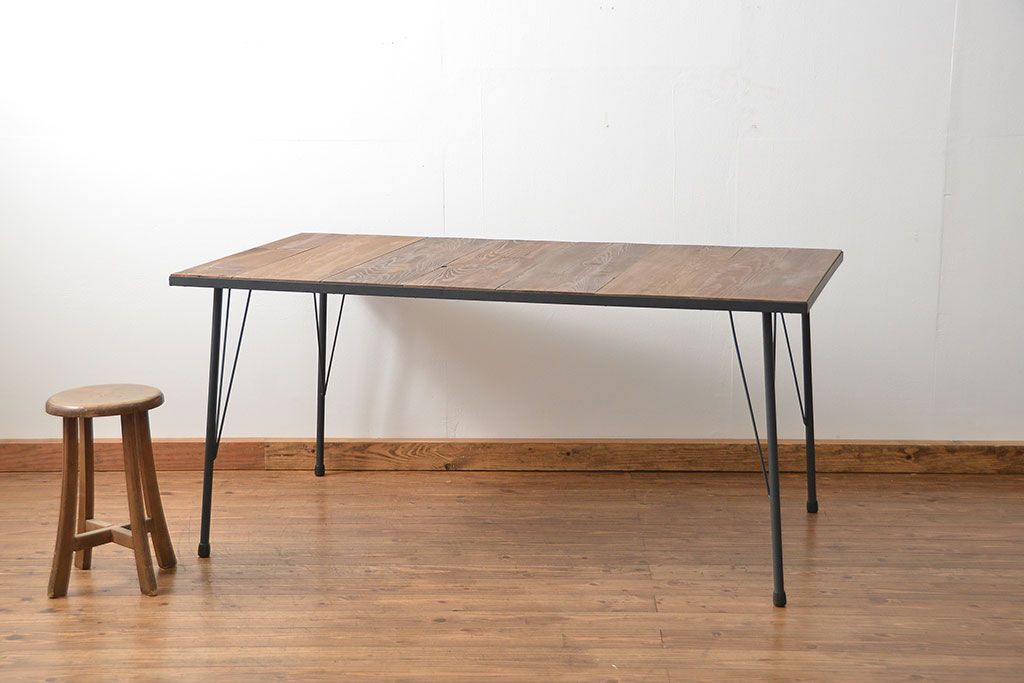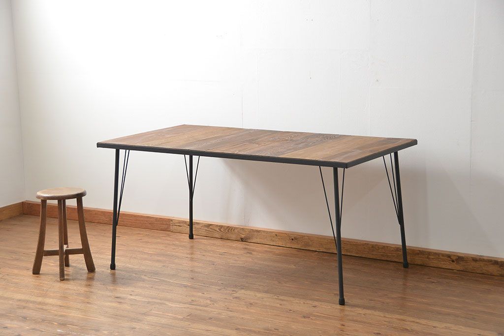 アンティーク 古材天板の鉄枠付き鉄脚テーブル(1)(作業台、デスク、陳列台、机、鉄足)です。