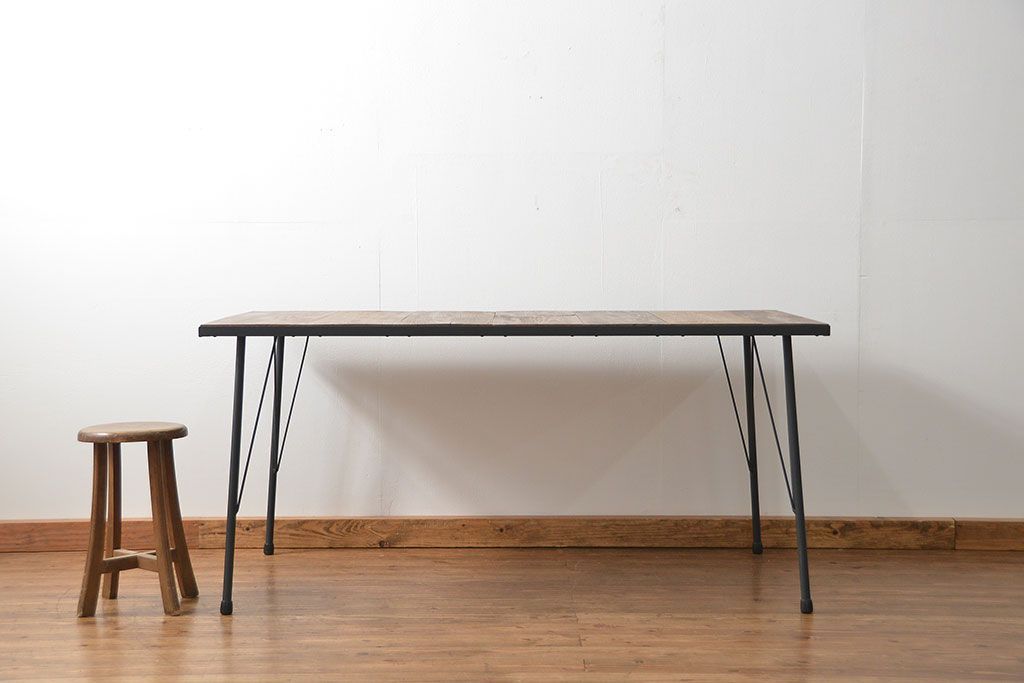 アンティーク家具 アンティーク 古材天板の鉄枠付き鉄脚テーブル(1)(作業台、デスク、陳列台、机、在宅ワーク、在宅用鉄足)