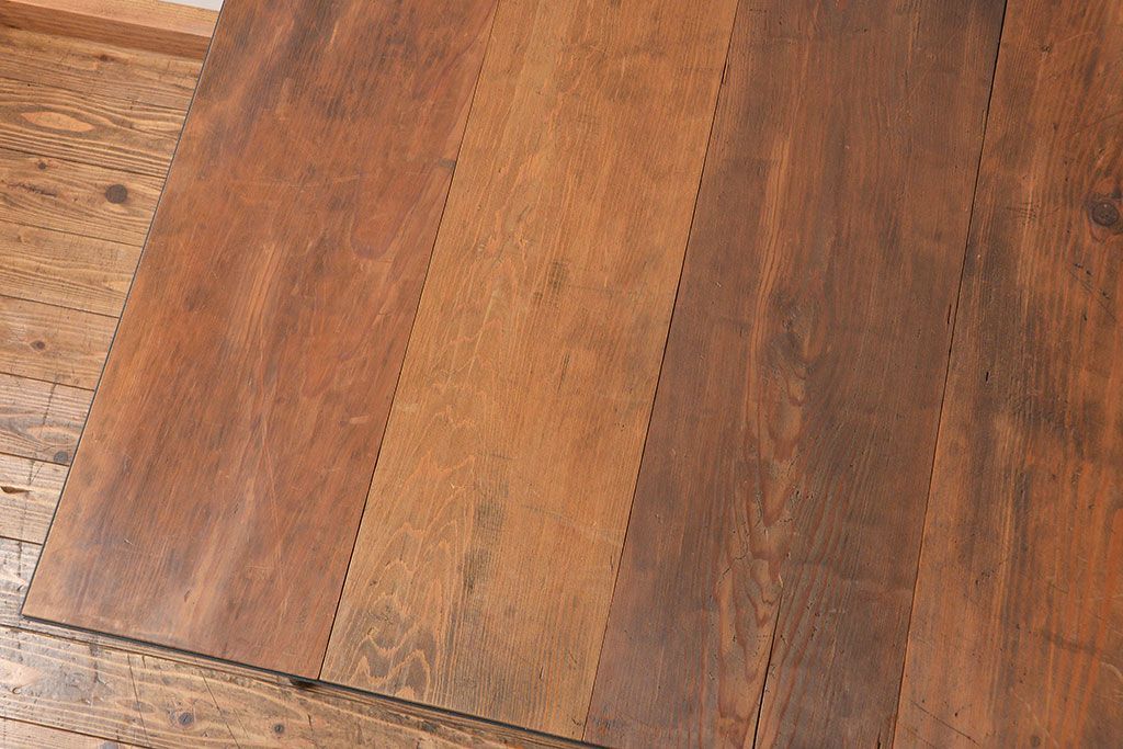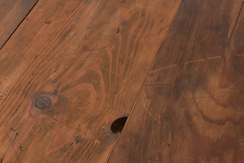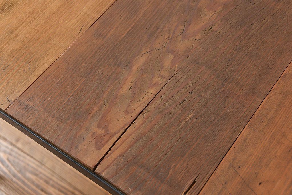 画像にありますように天板は古材を使っておりますのでキズ等ありますが、使用上、強度上に問題はありません。