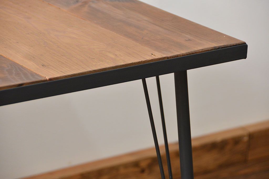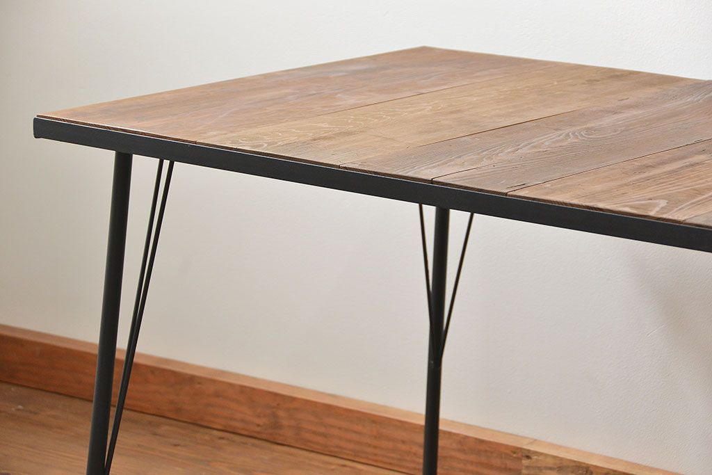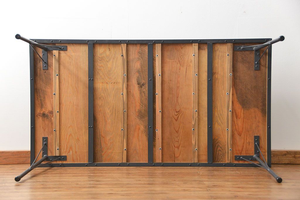 テーブル> 鉄脚テーブル > アンティーク家具 アンティーク 古材天板の鉄枠付き鉄脚テーブル(1)(作業台、デスク、陳列台、机、在宅ワーク、在宅用鉄足)
