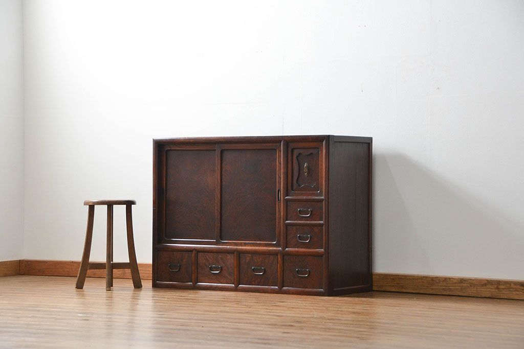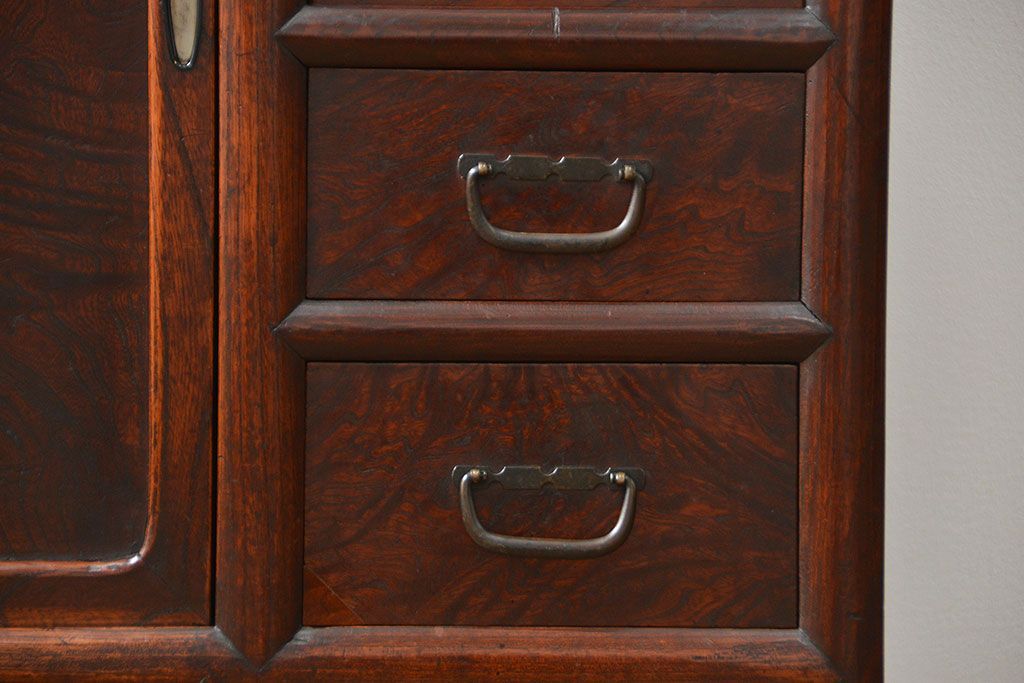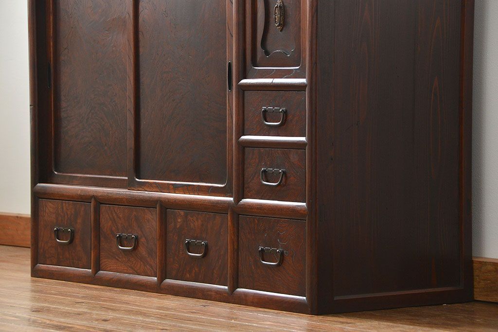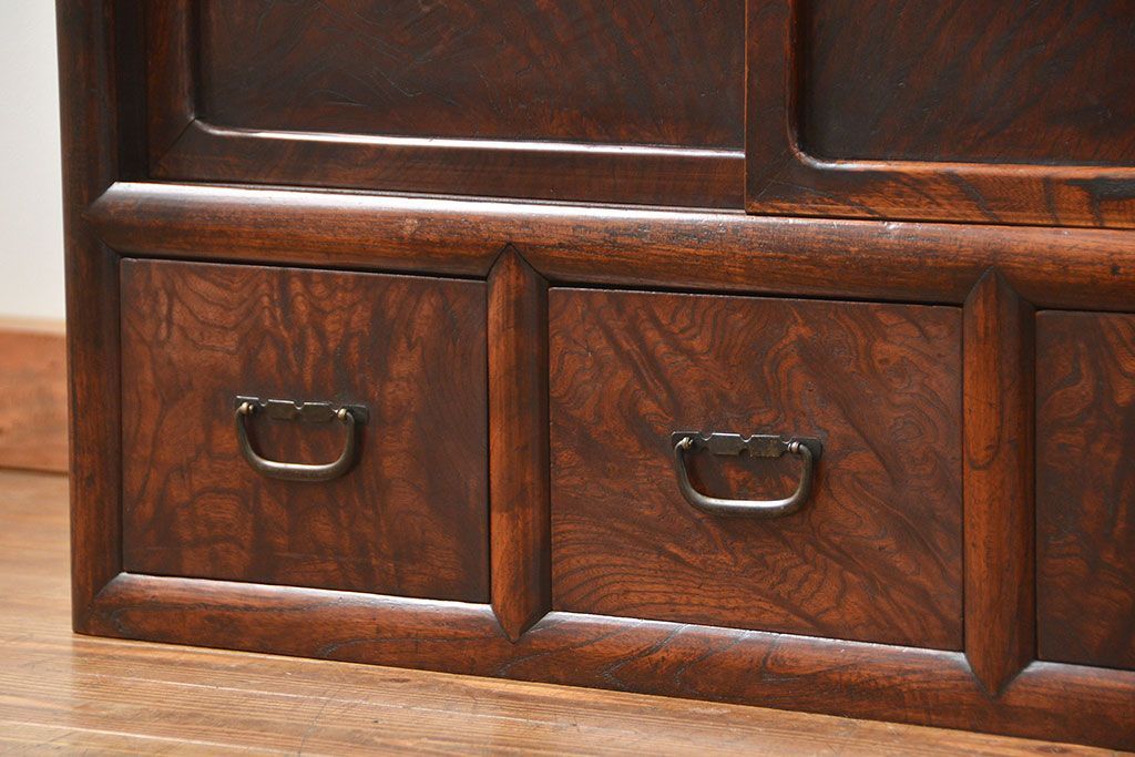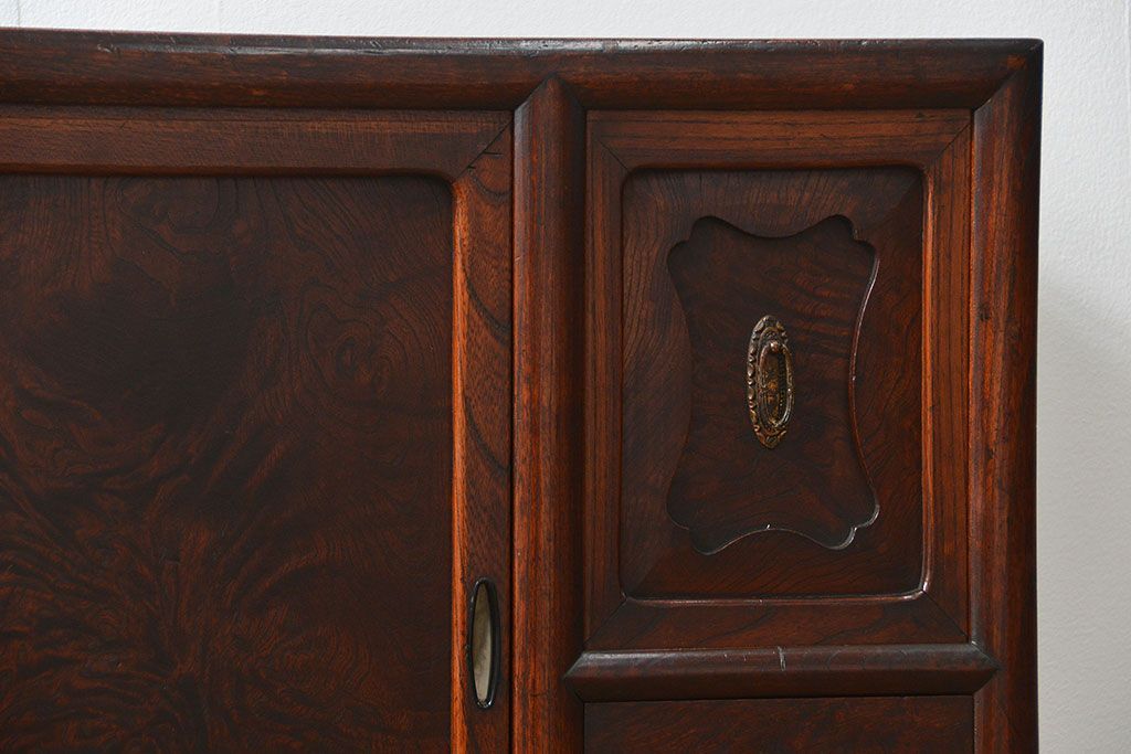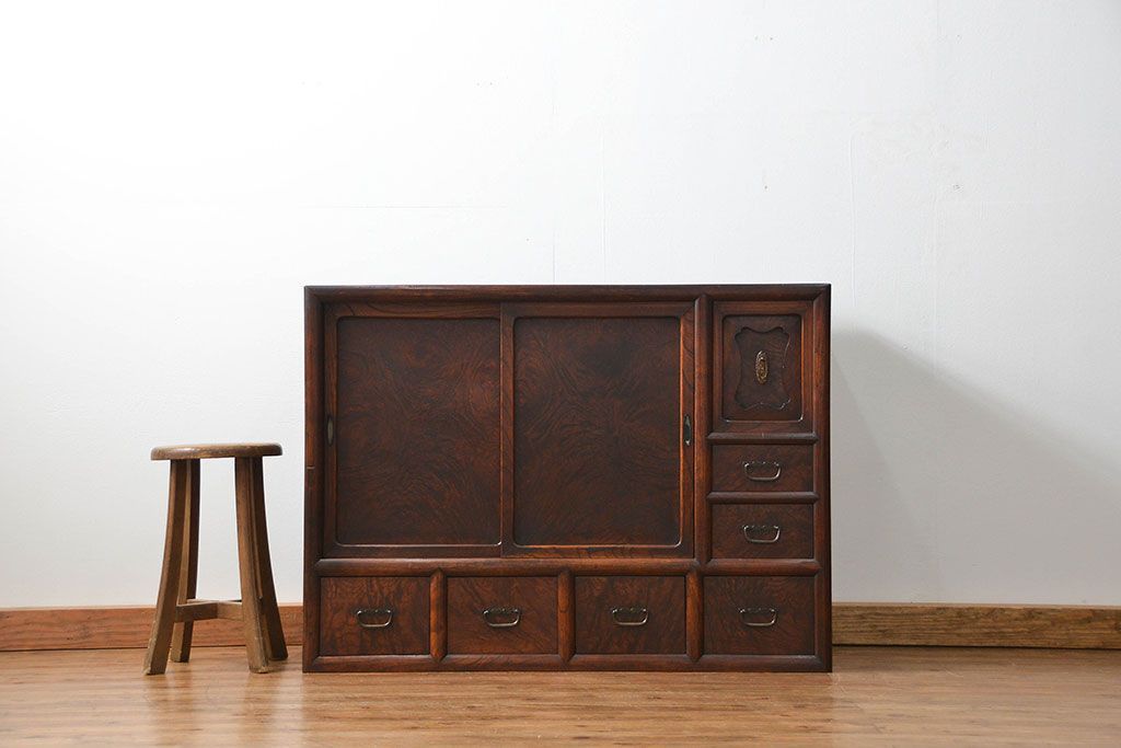 アンティーク家具 古民具・骨董 前面欅材玉杢 上質な茶箪笥(1)