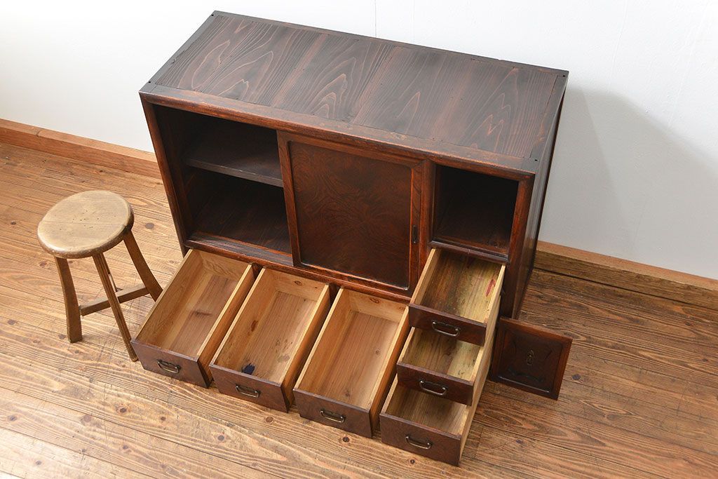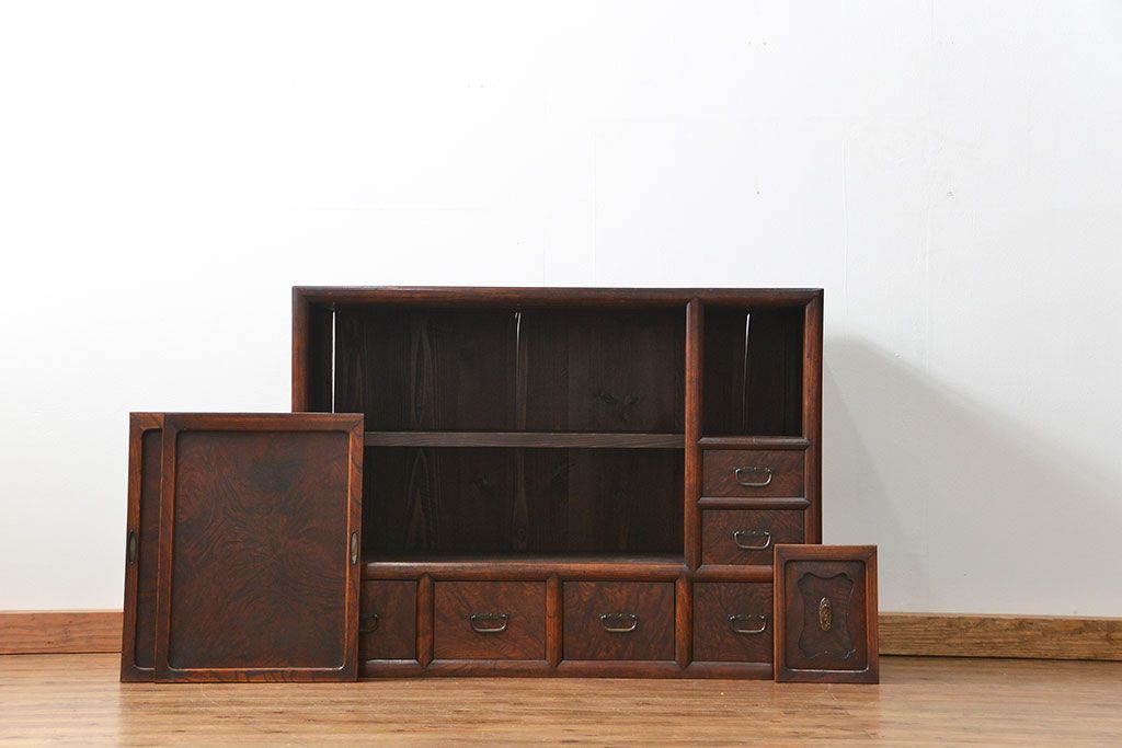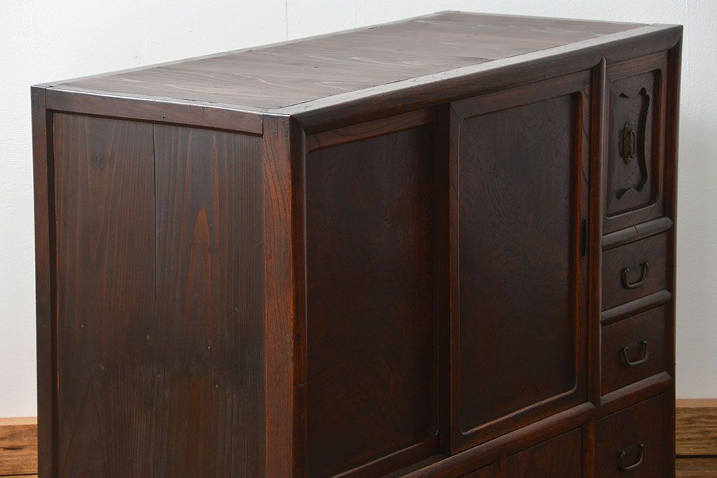 前面部分が高級素材である欅材を使用した上質な茶箪笥です。