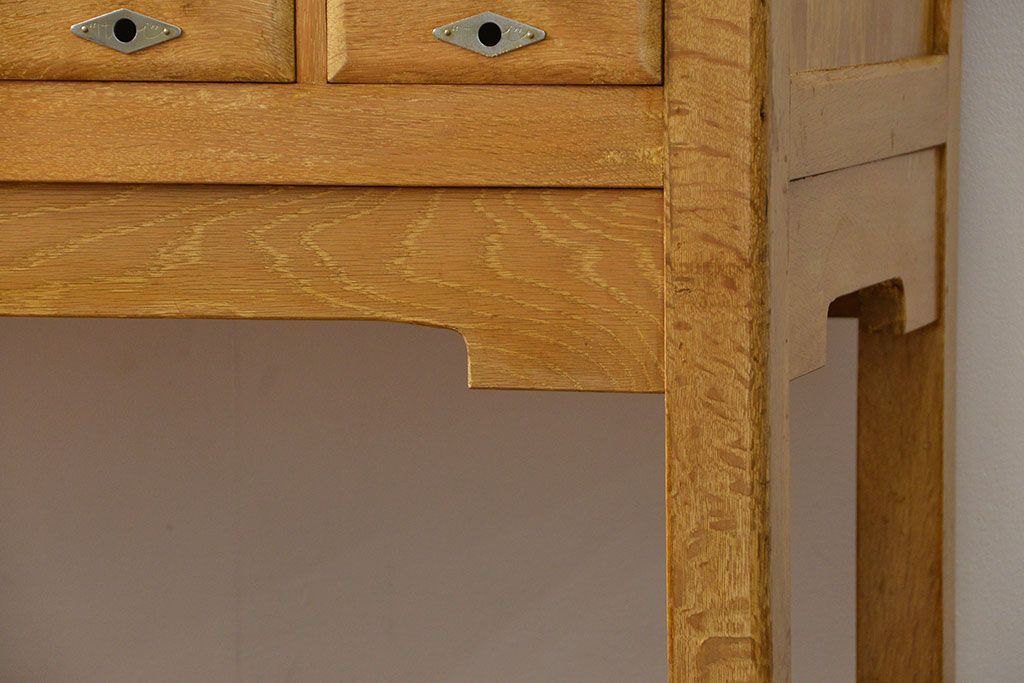 引き出し内部は使いやすくするために、金具を外し、板を敷いております。画像でご確認ください。