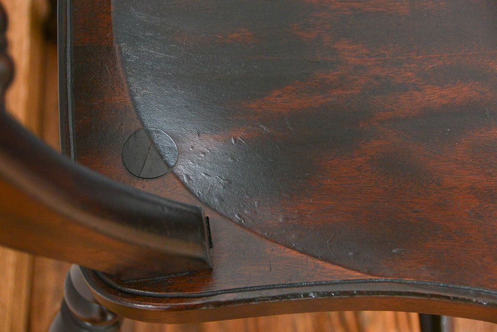 画像にありますように背もたれの一部に木材の割れの直しがありますが