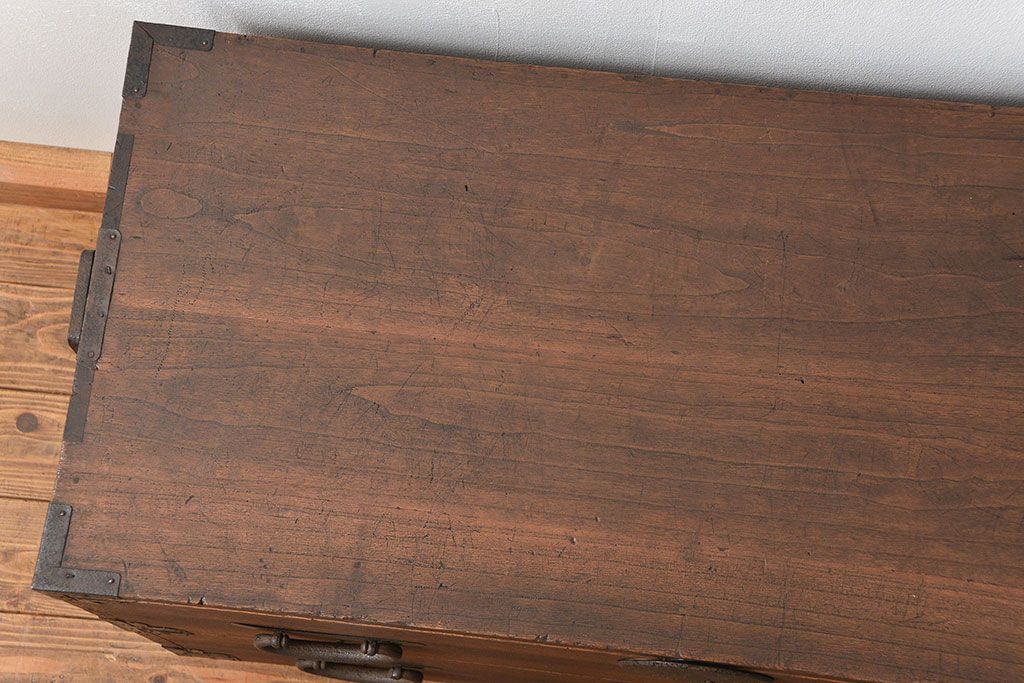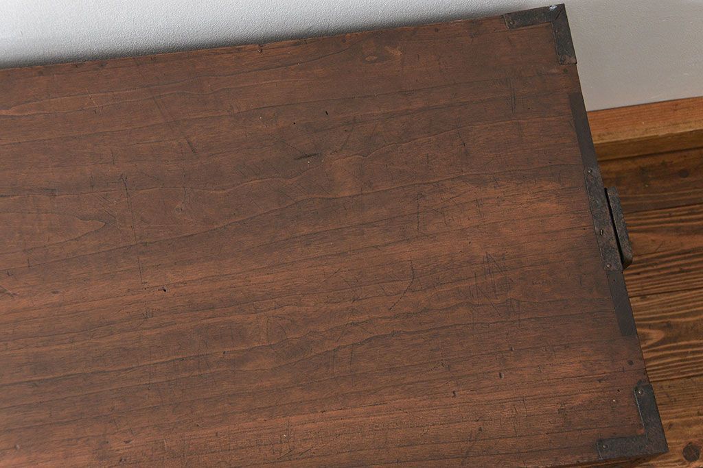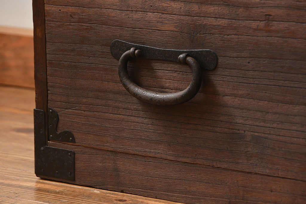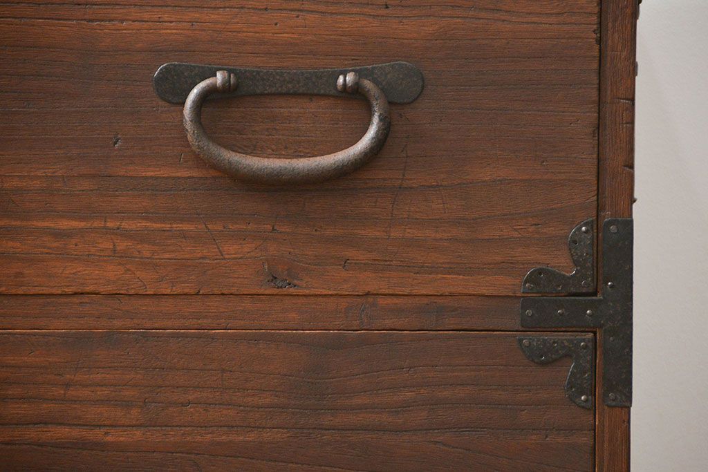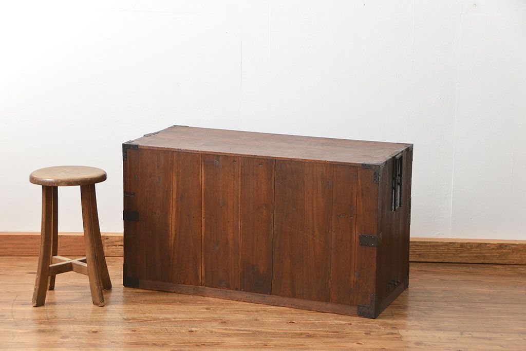 骨董・美術品 > アンティーク家具 古民具・骨董 丸金具のシンプルな時代箪笥ローボード(ローチェスト)