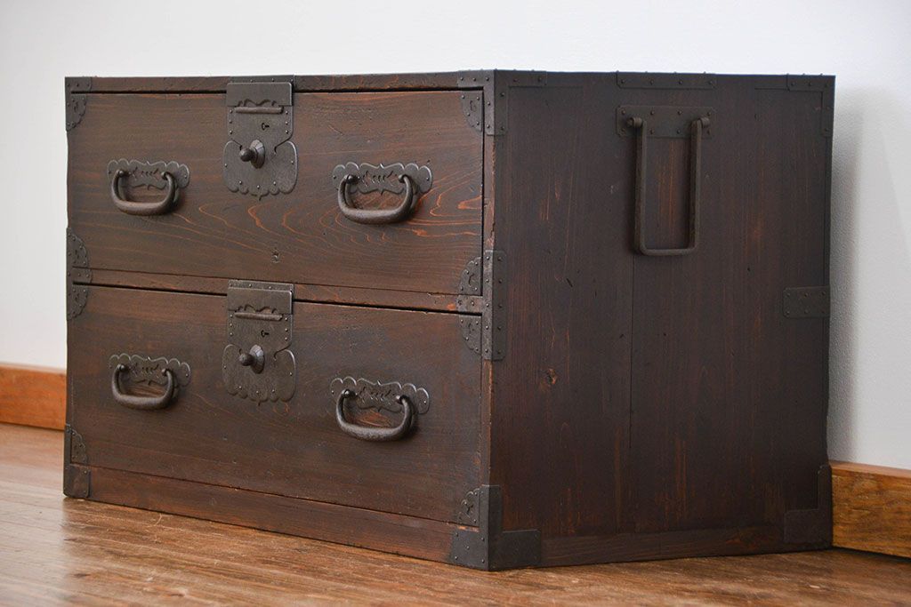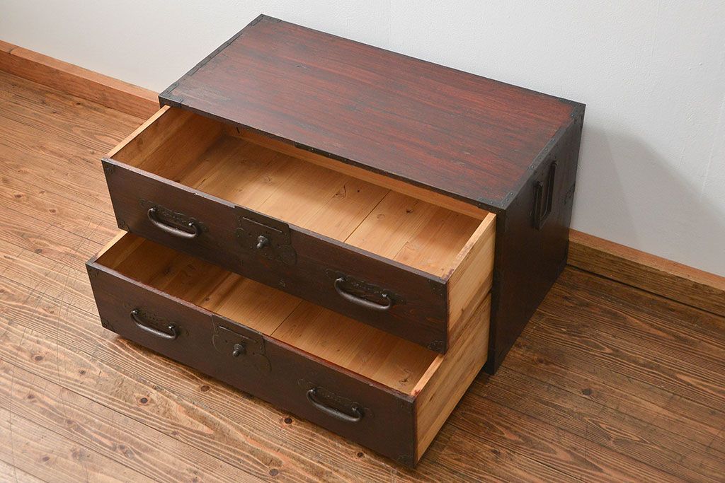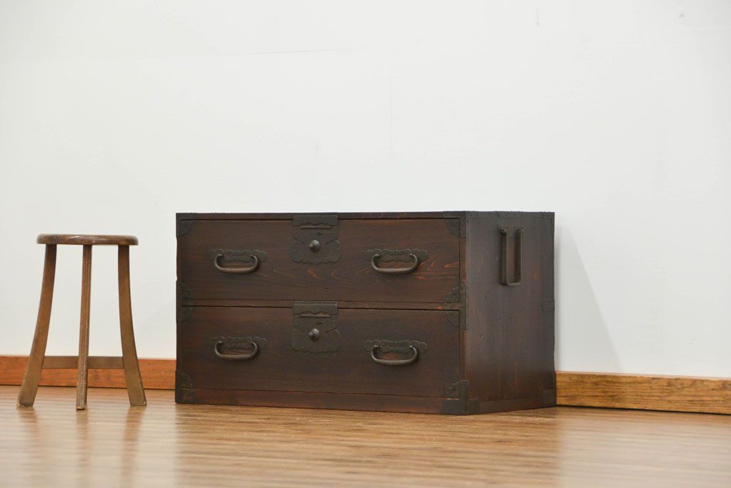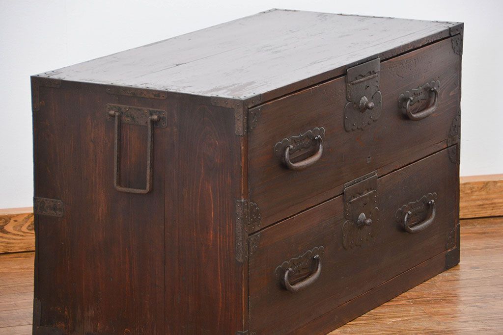 古民具・骨董 シックな時代箪笥ローボード(ローチェスト)です。
