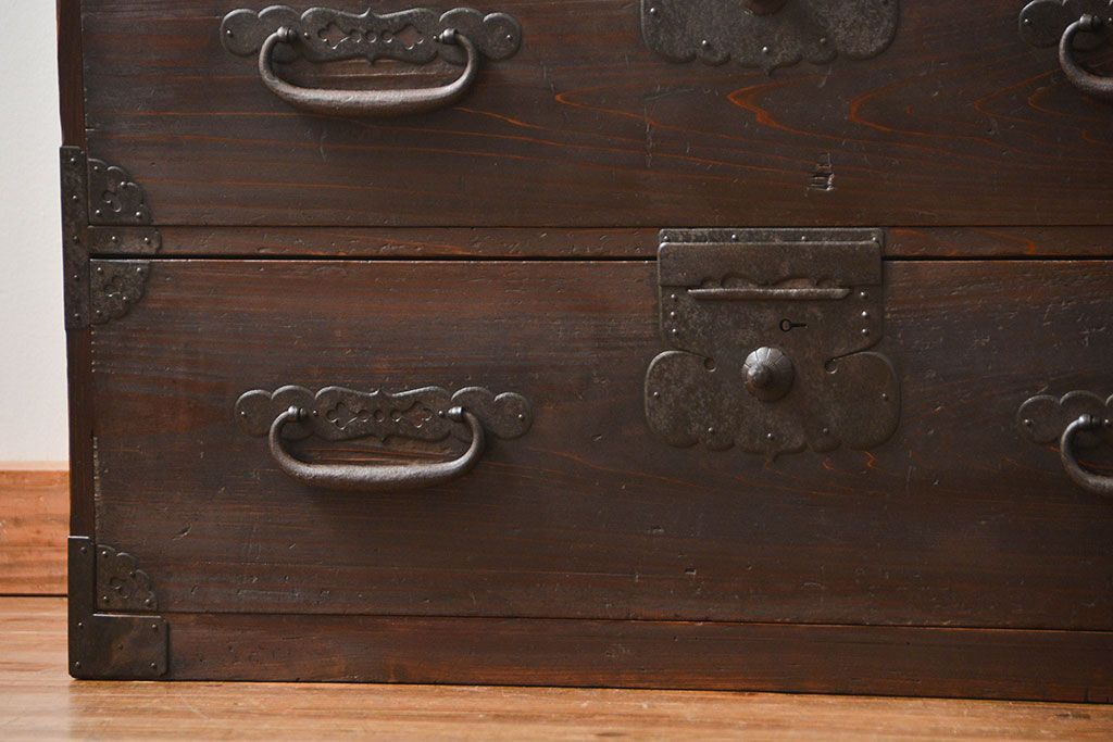 アンティーク家具 古民具・骨董 シックな時代箪笥ローボード(ローチェスト)