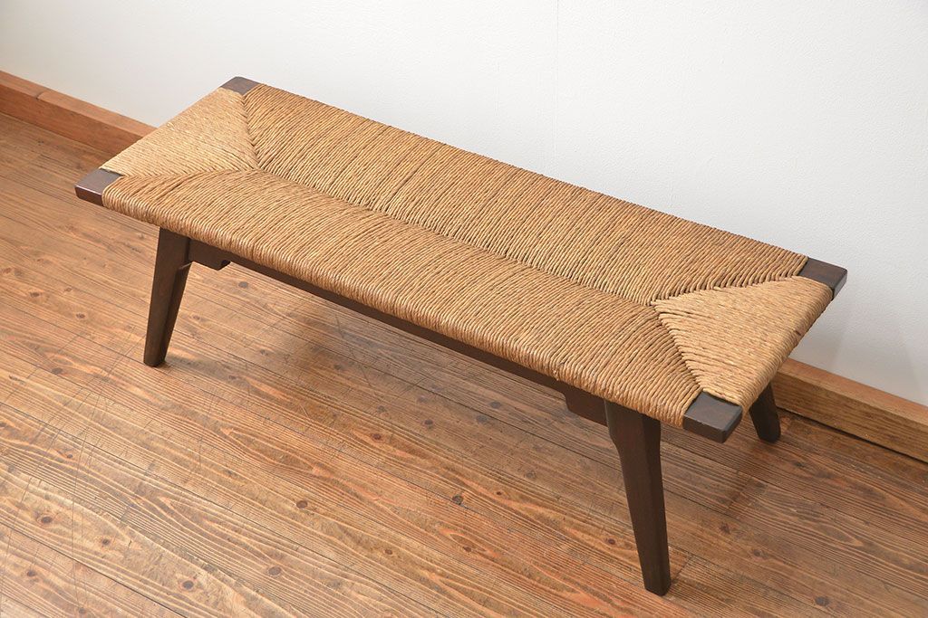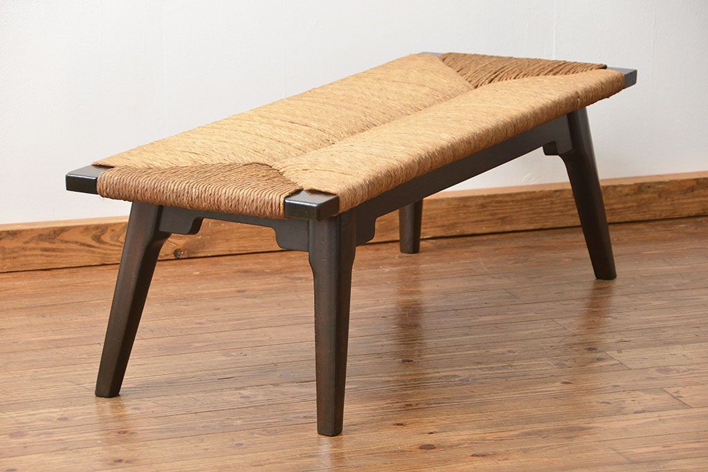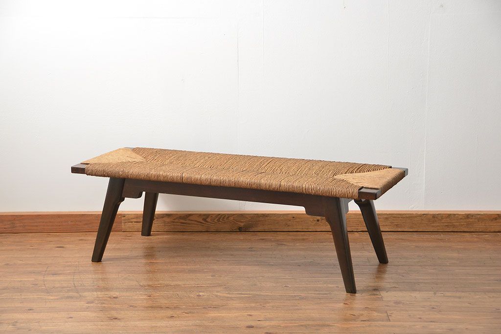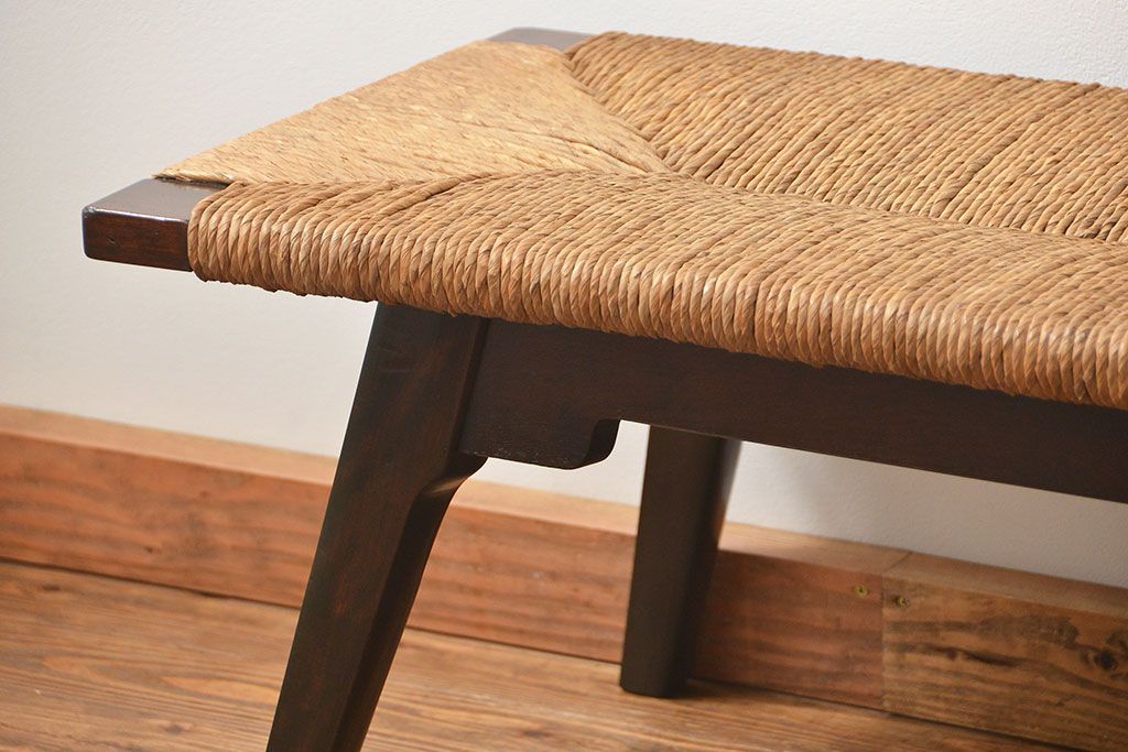 中古 ビンテージ 松本民芸家具 ラッシ長スツール(2)(ベンチ、長椅子、イス)