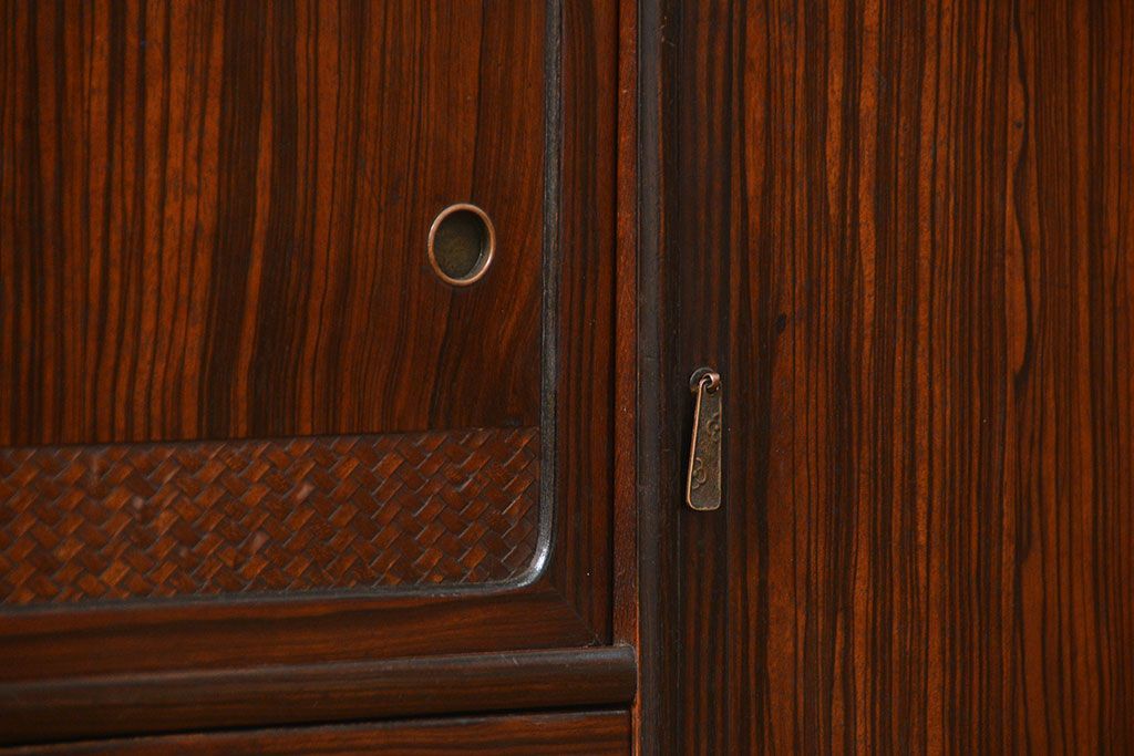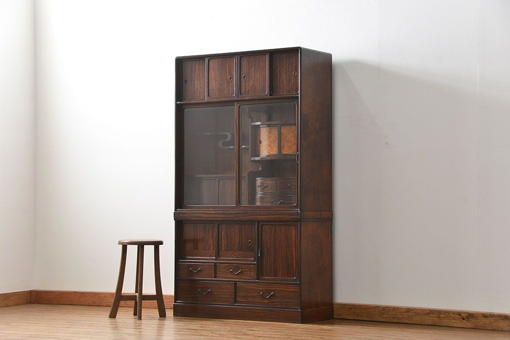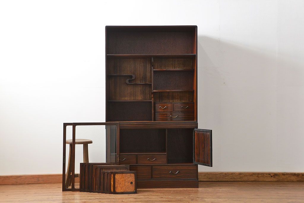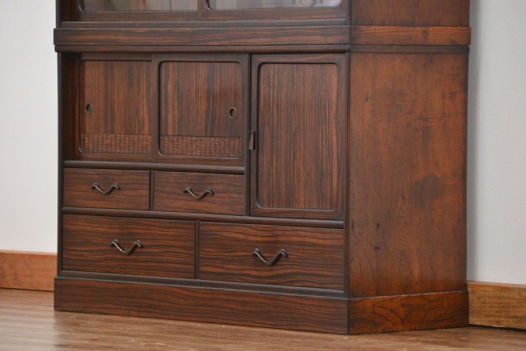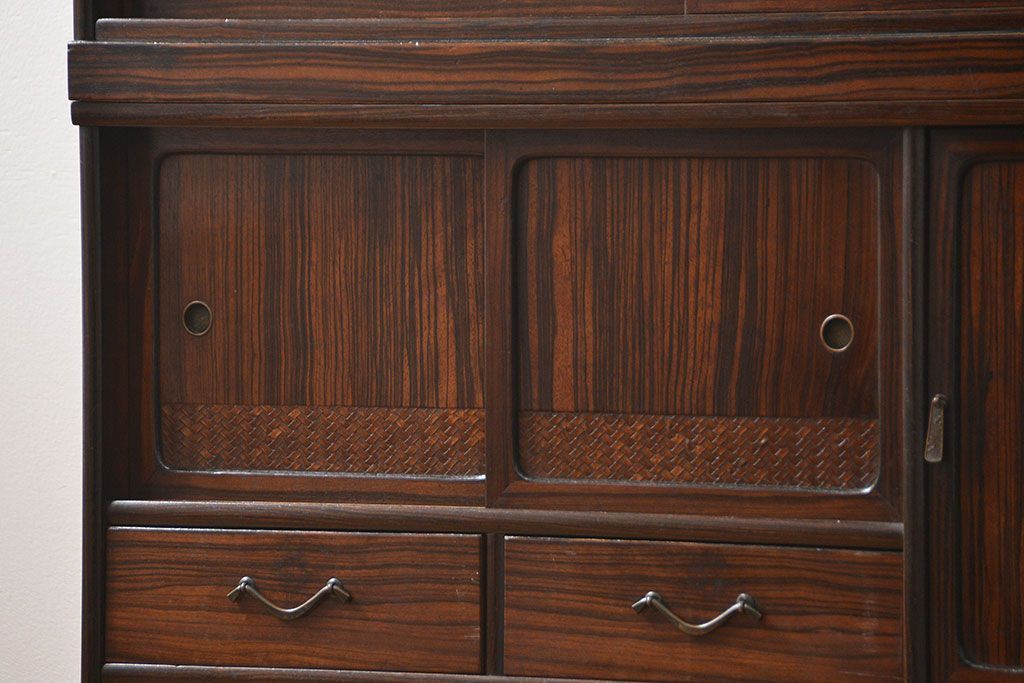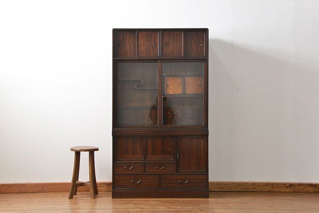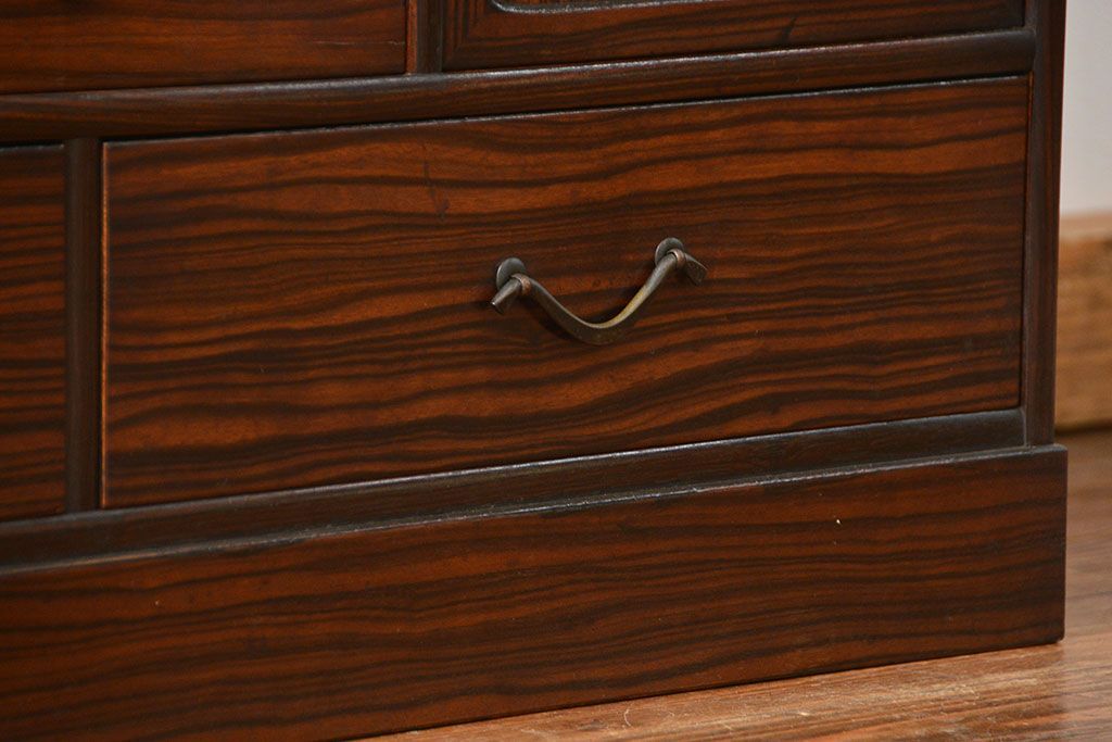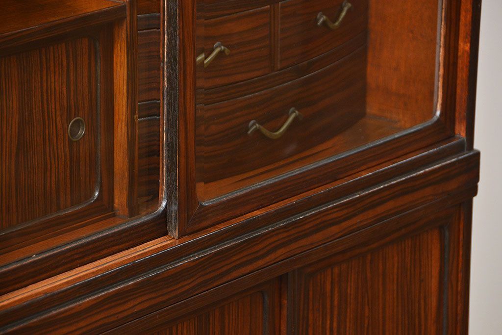 アンティーク家具 アンティーク 前面縞黒檀の美しい二段重ね茶箪笥(収納棚)