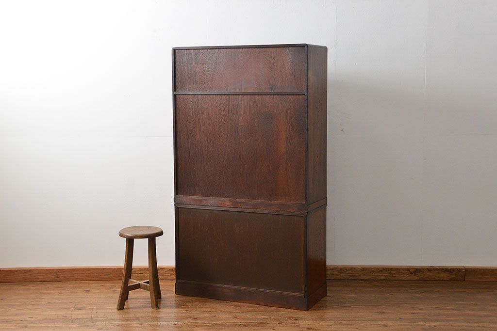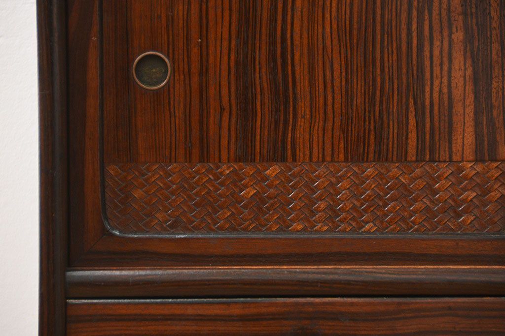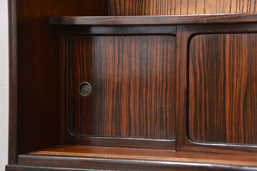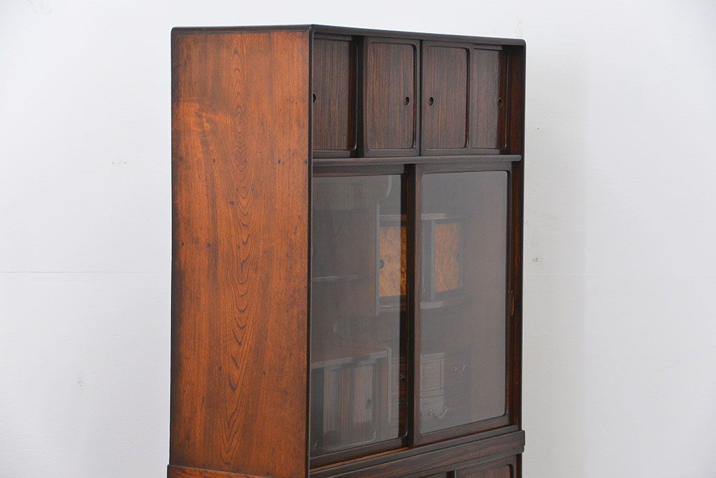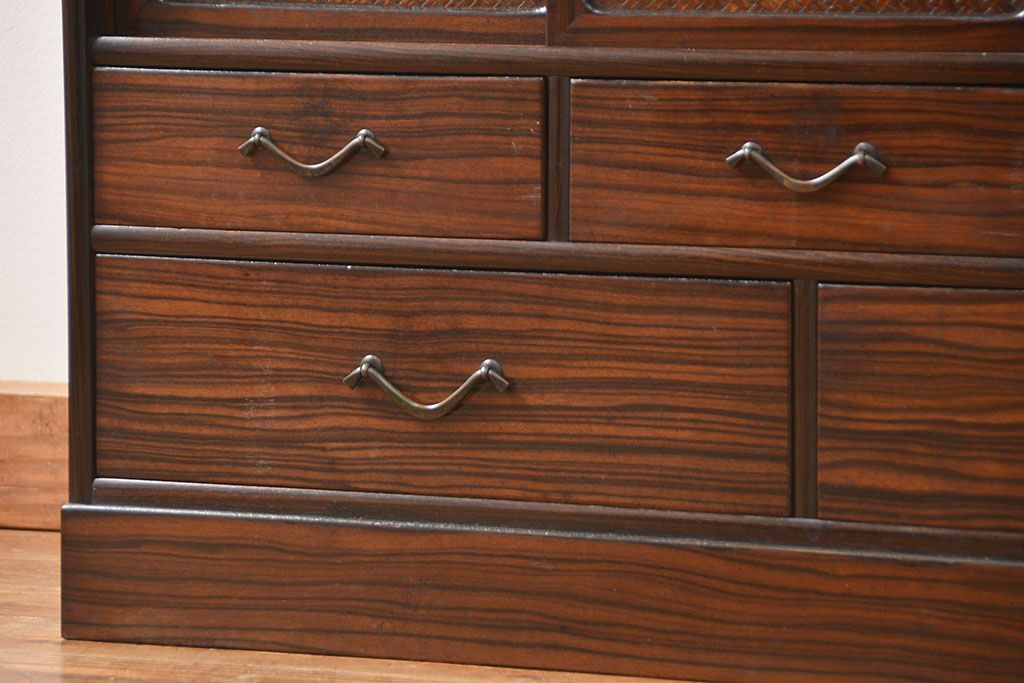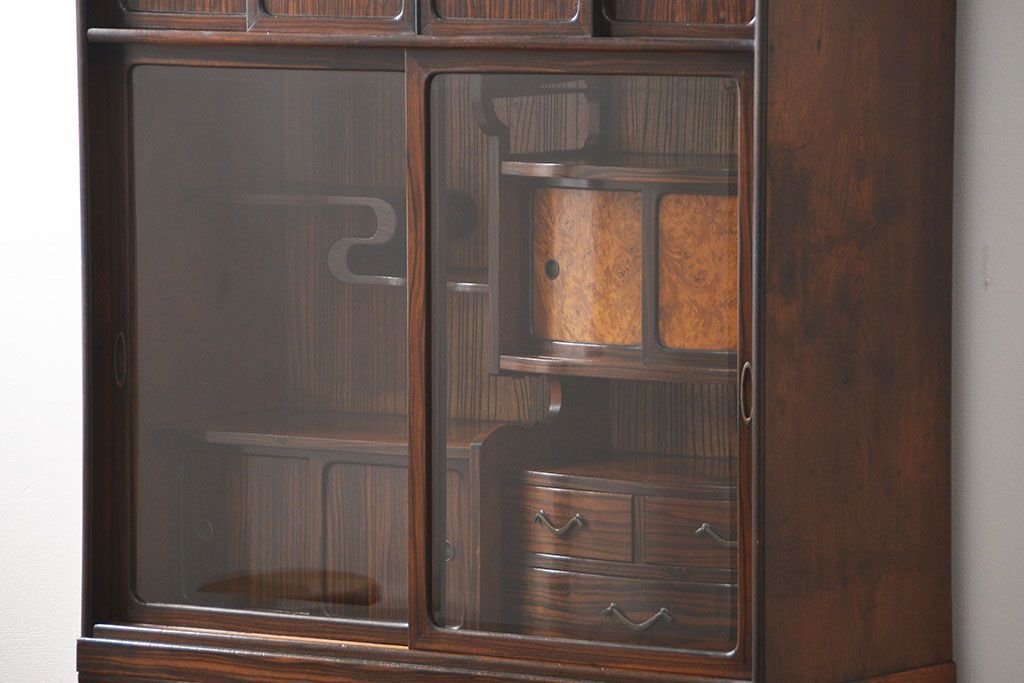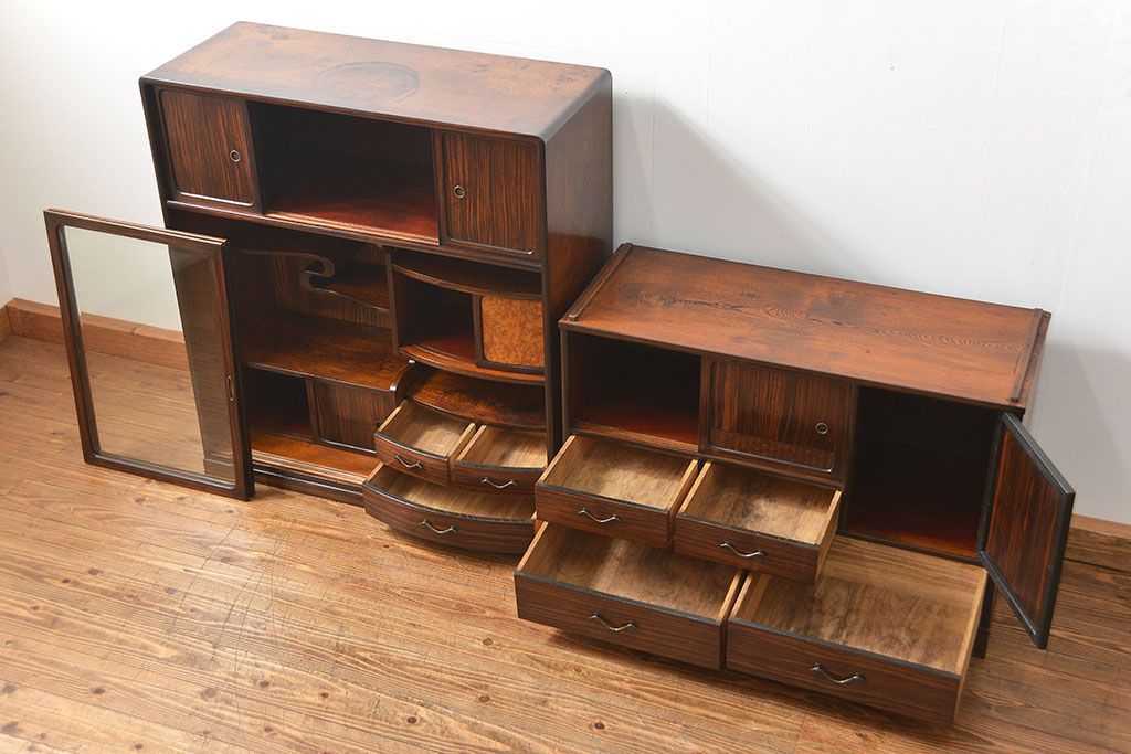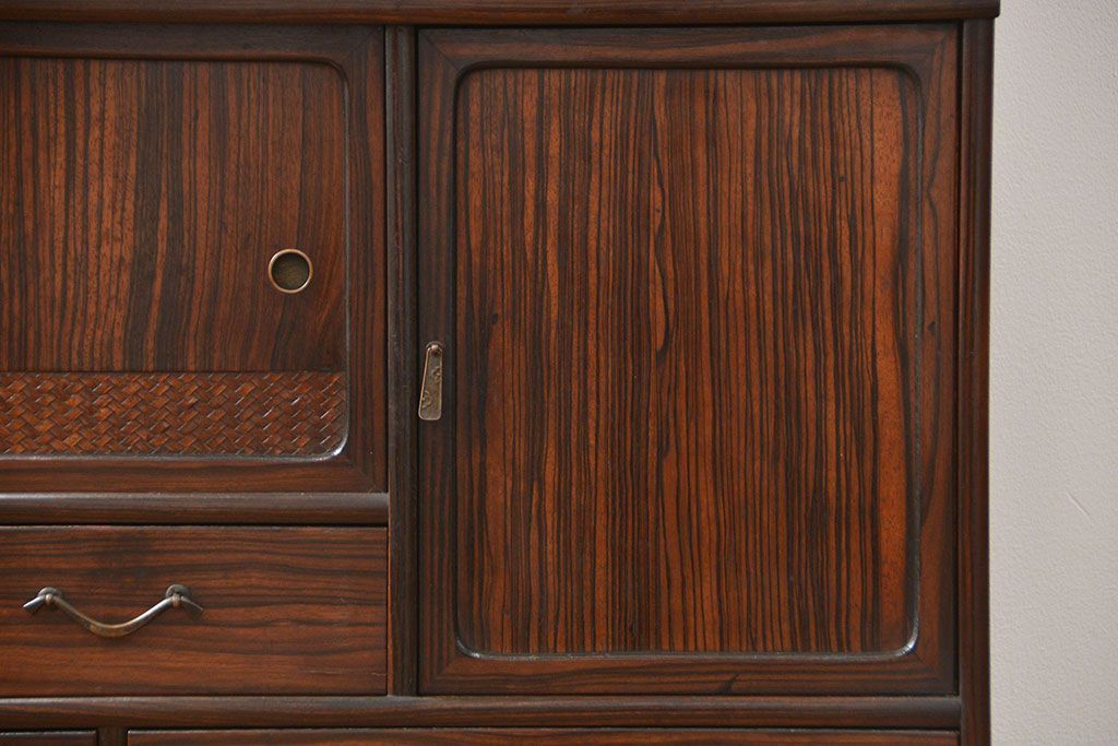 アンティーク家具 アンティーク 前面縞黒檀の美しい二段重ね茶箪笥(収納棚)