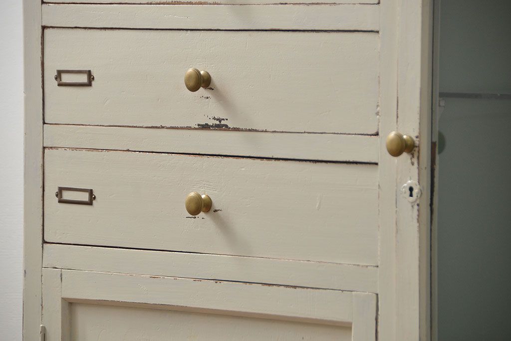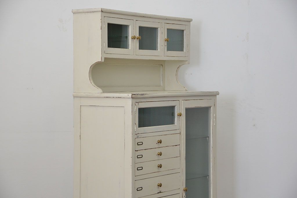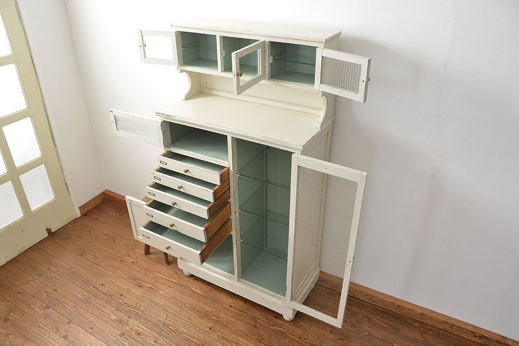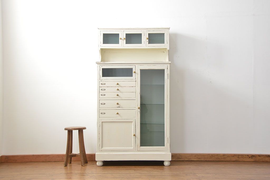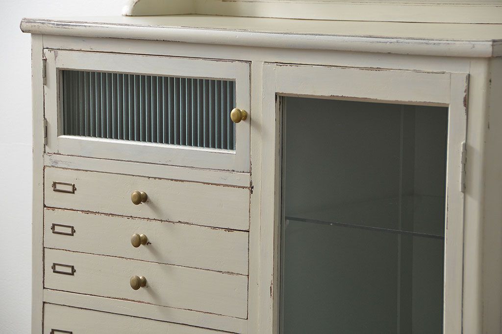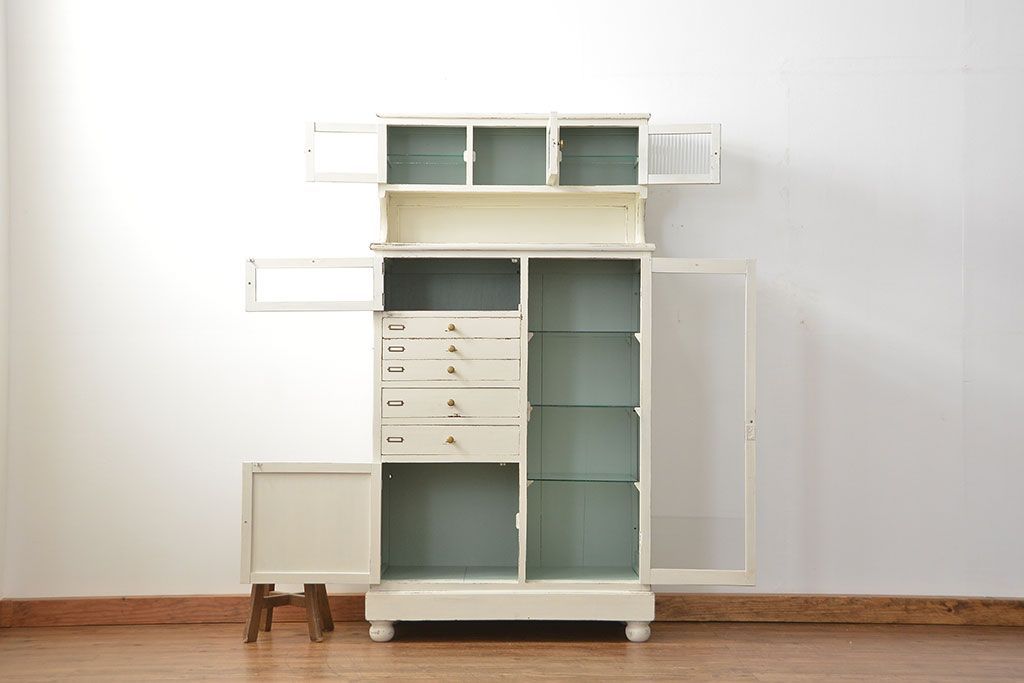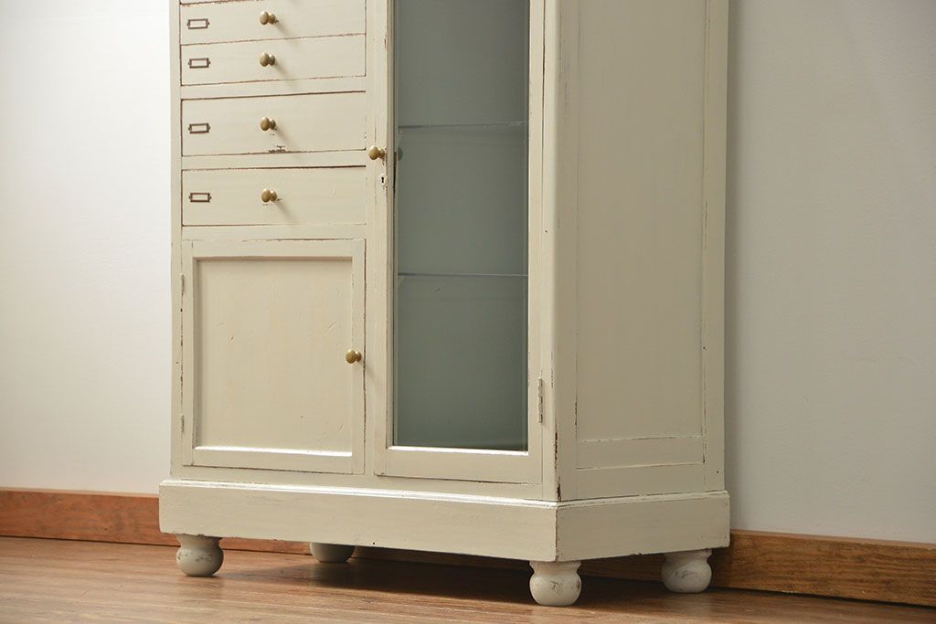 アンティークペイント レトロな脚付きデンタルキャビネット(デンタルケース、ケビント、収納棚)です。