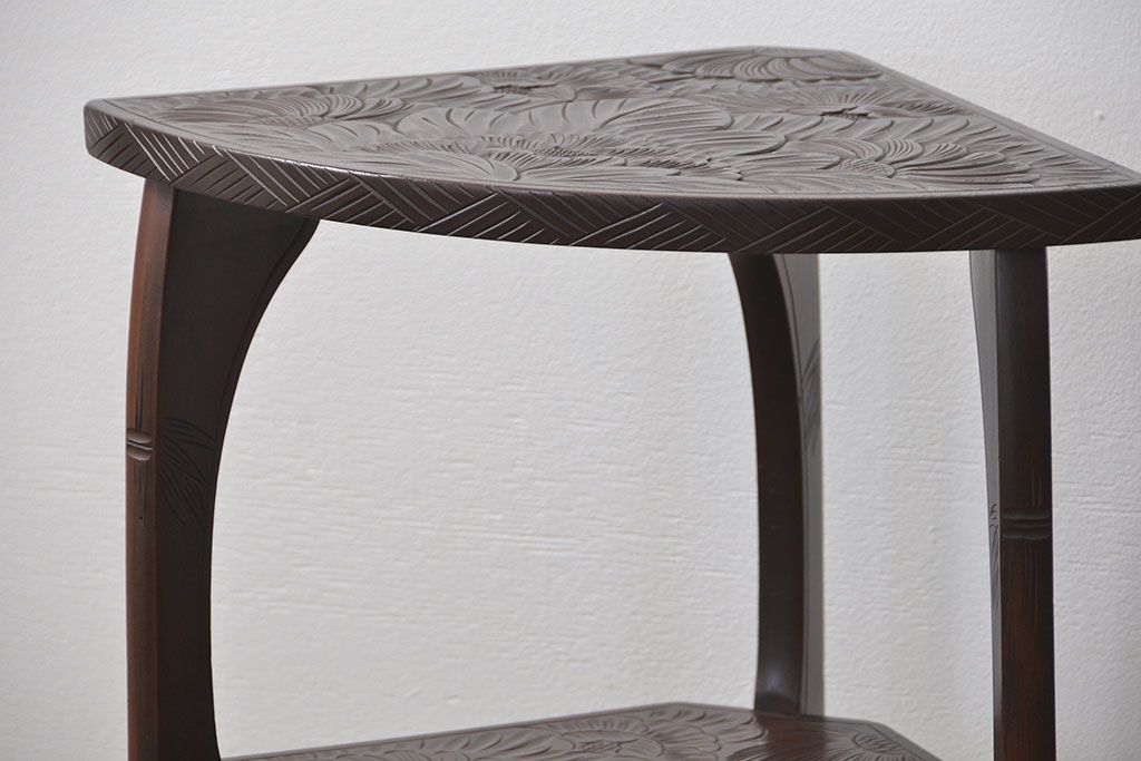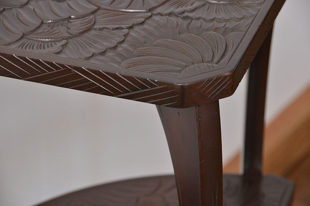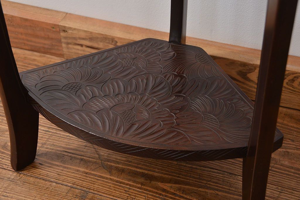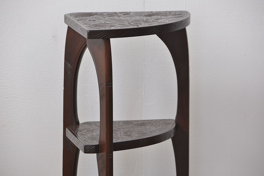 中古 日光彫りサイドテーブル(花台、飾り棚)