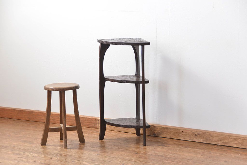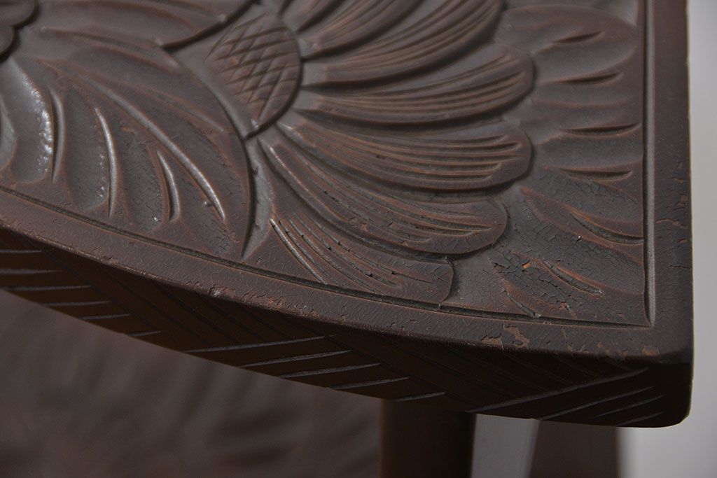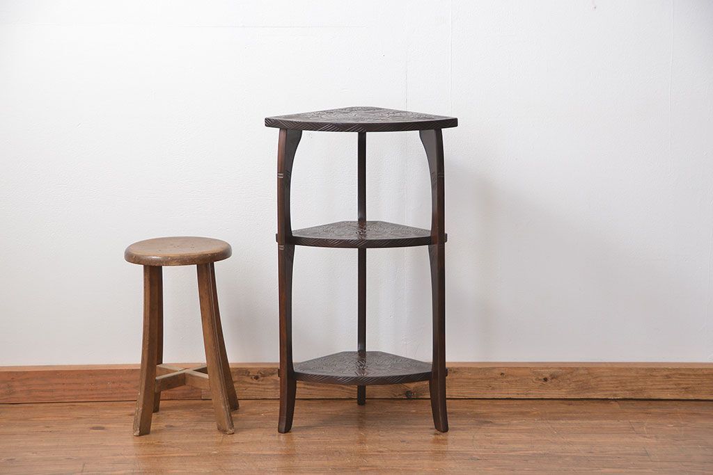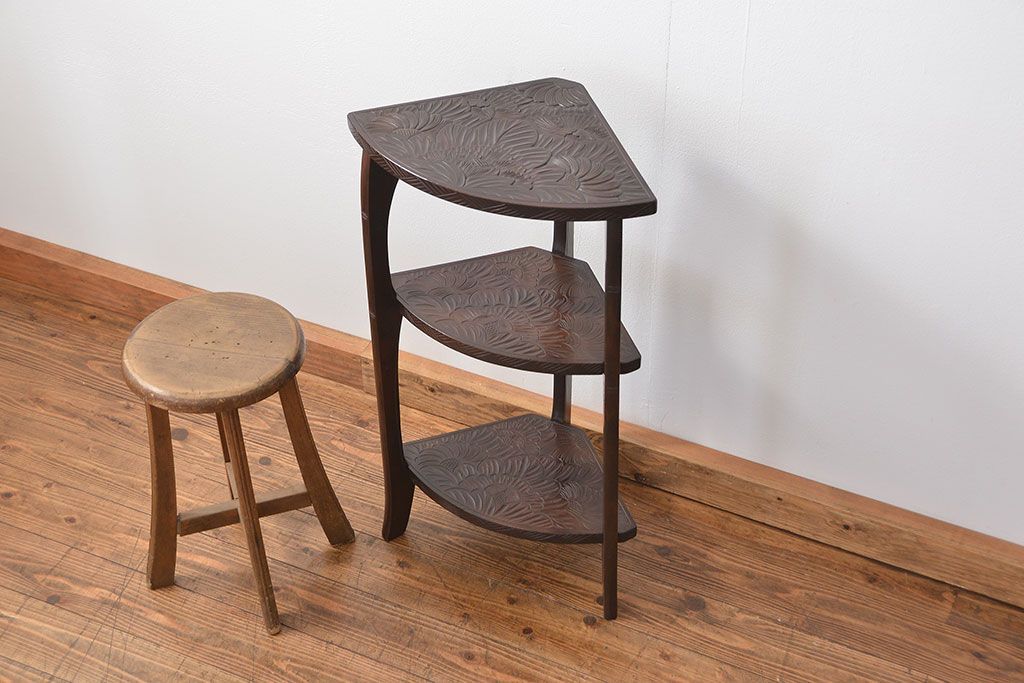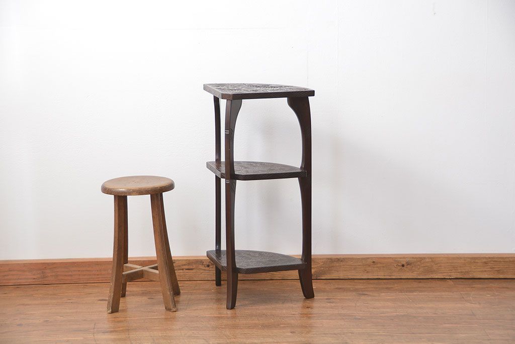 中古 日光彫りサイドテーブル(花台、飾り棚)