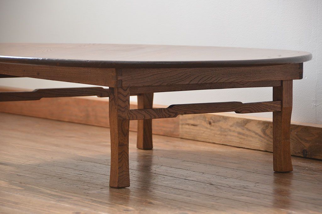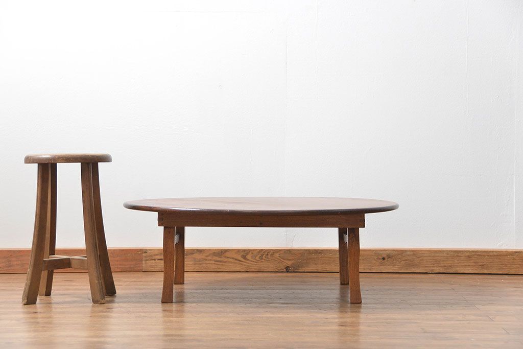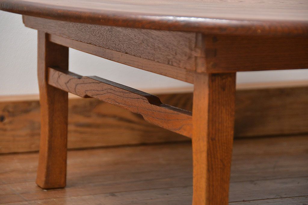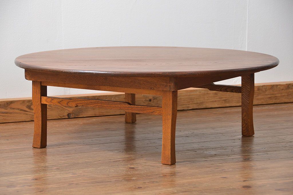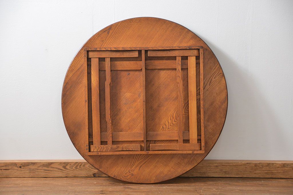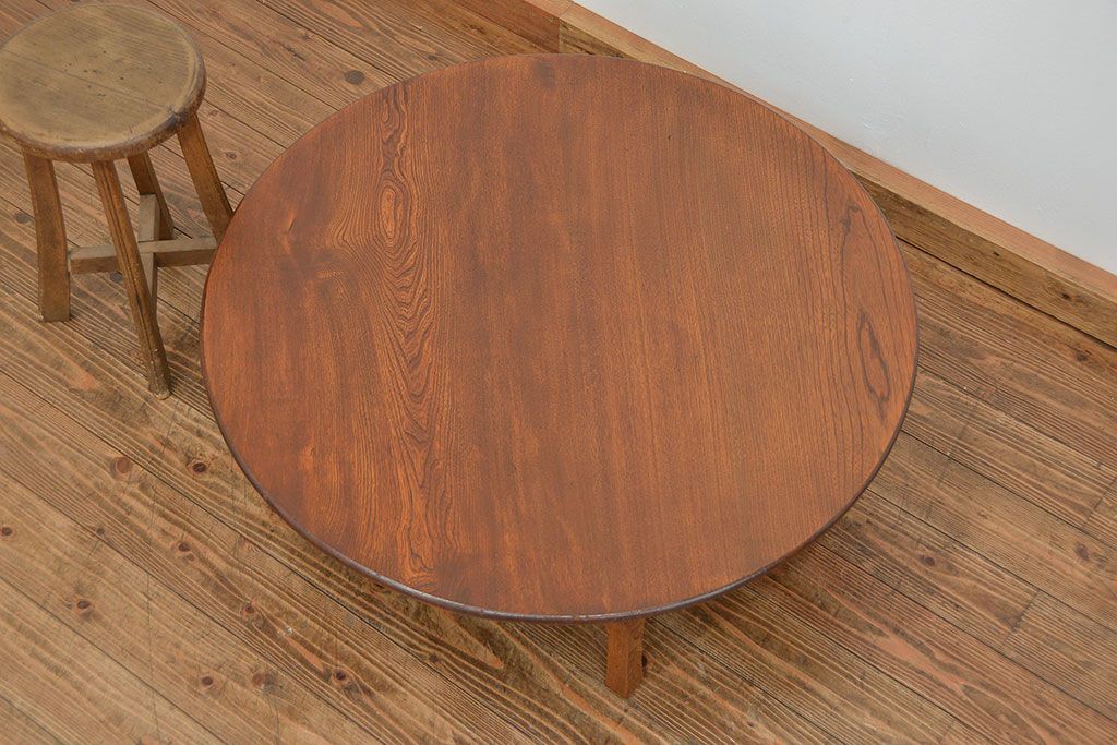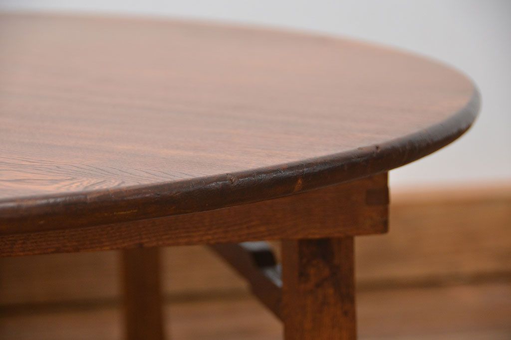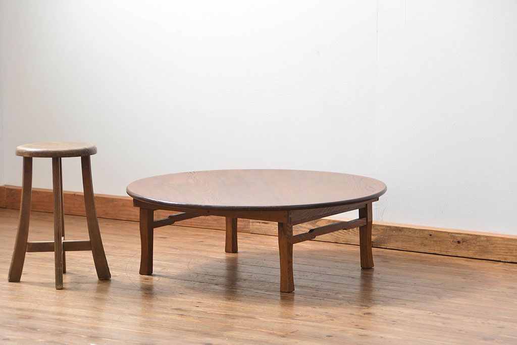 アンティーク家具 古民具・骨董 古い栓材の大振りな丸型ちゃぶ台(1)(テーブル)