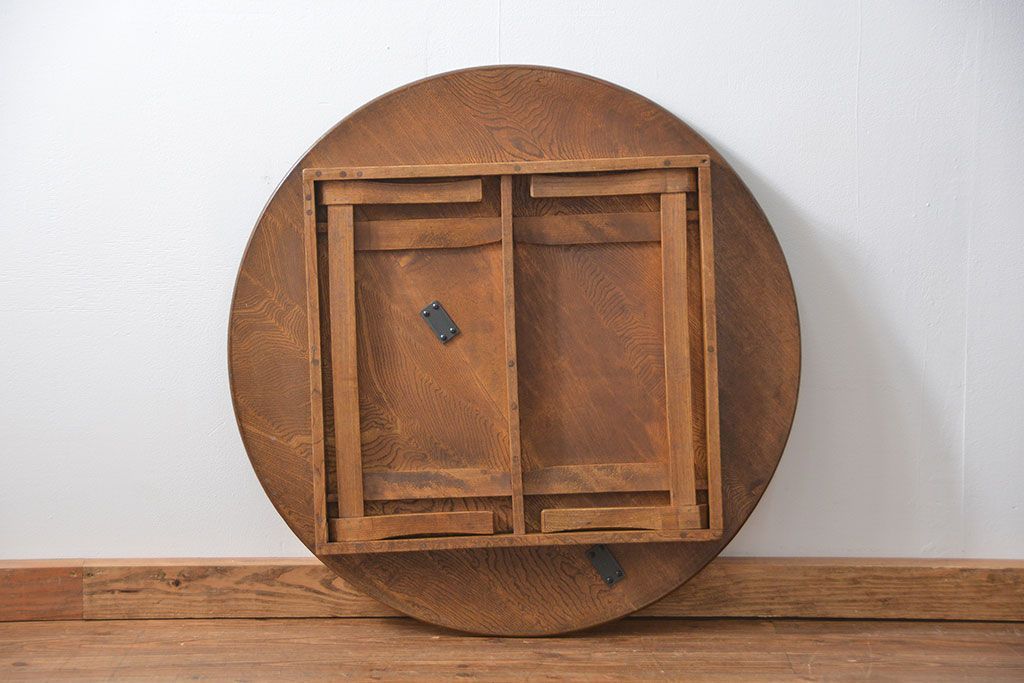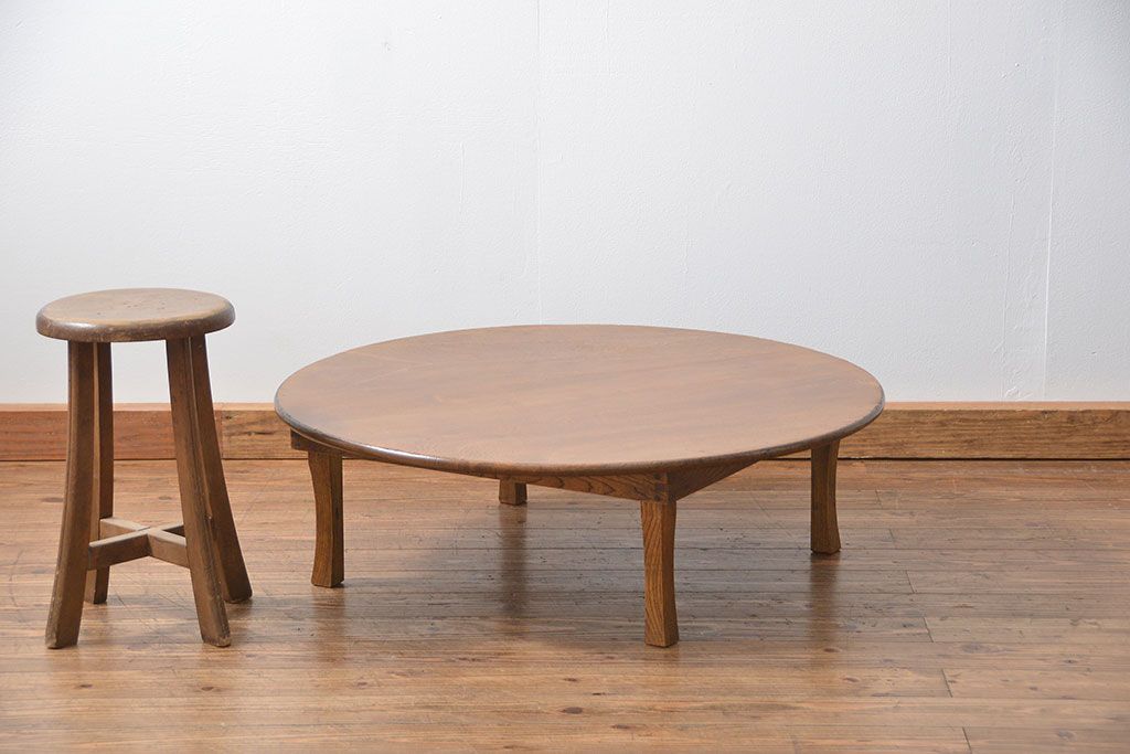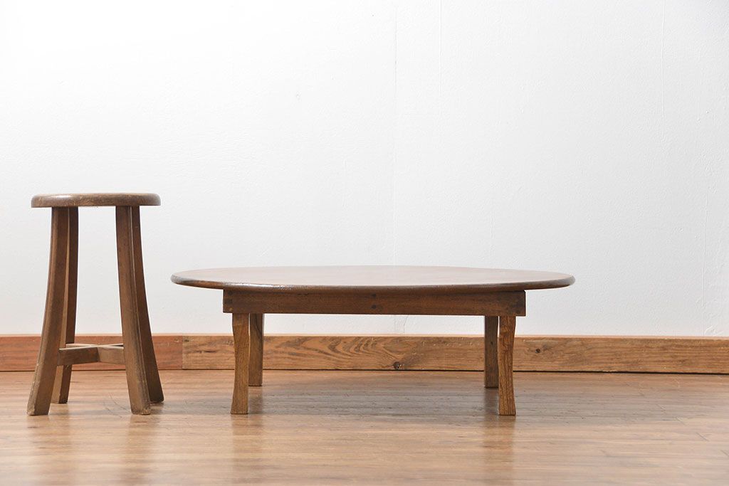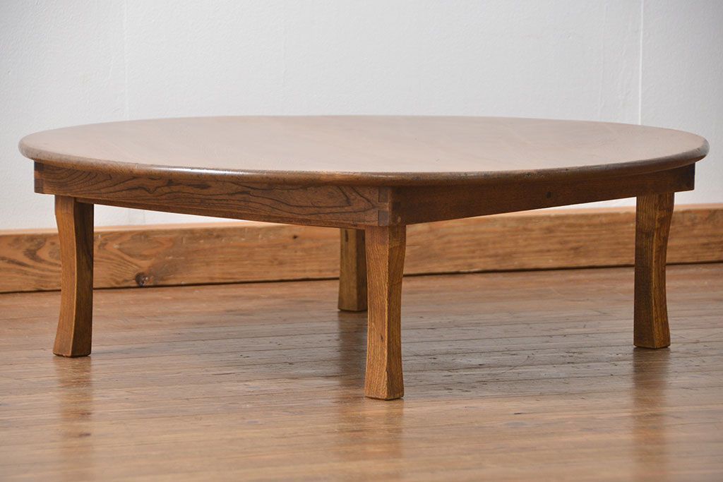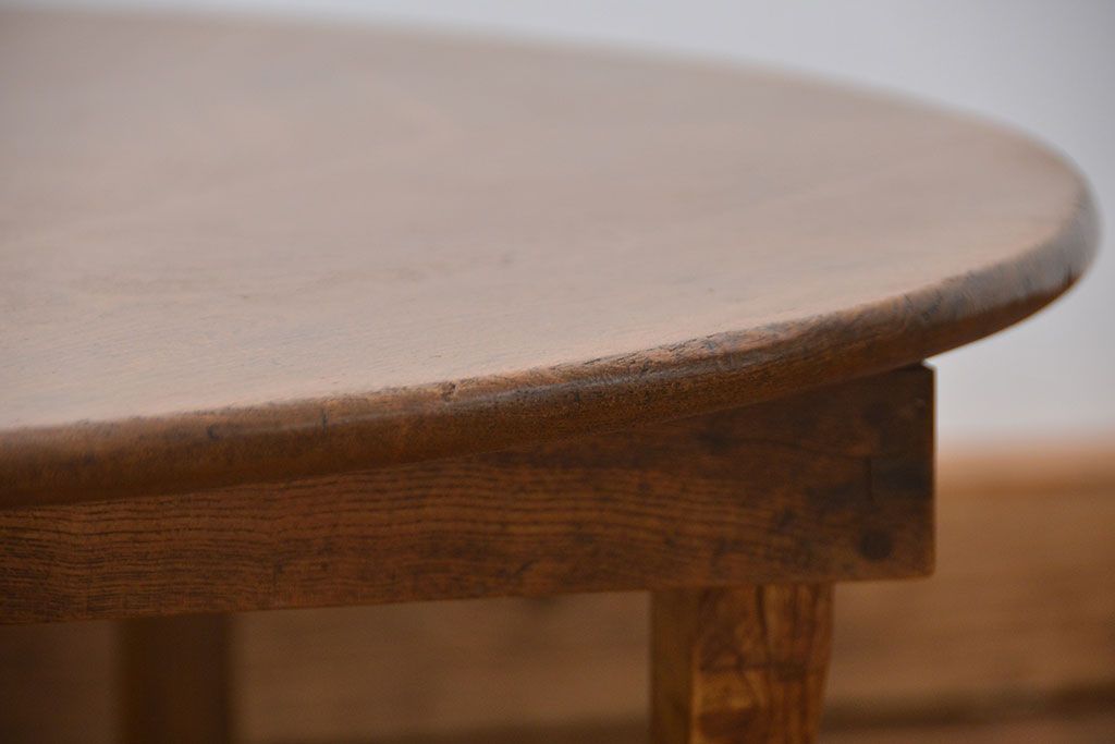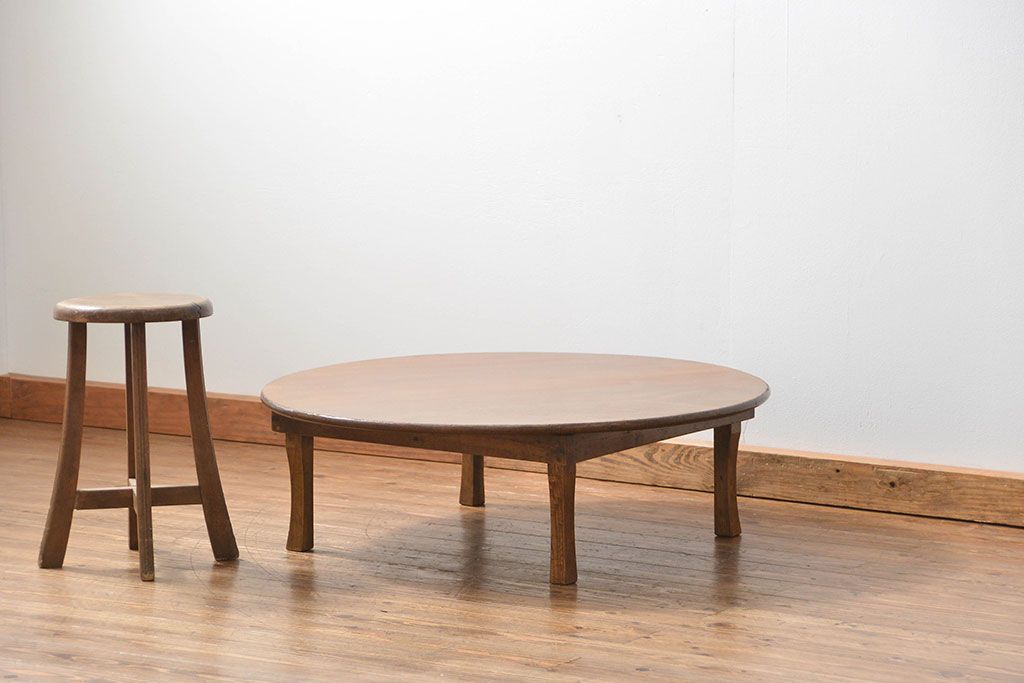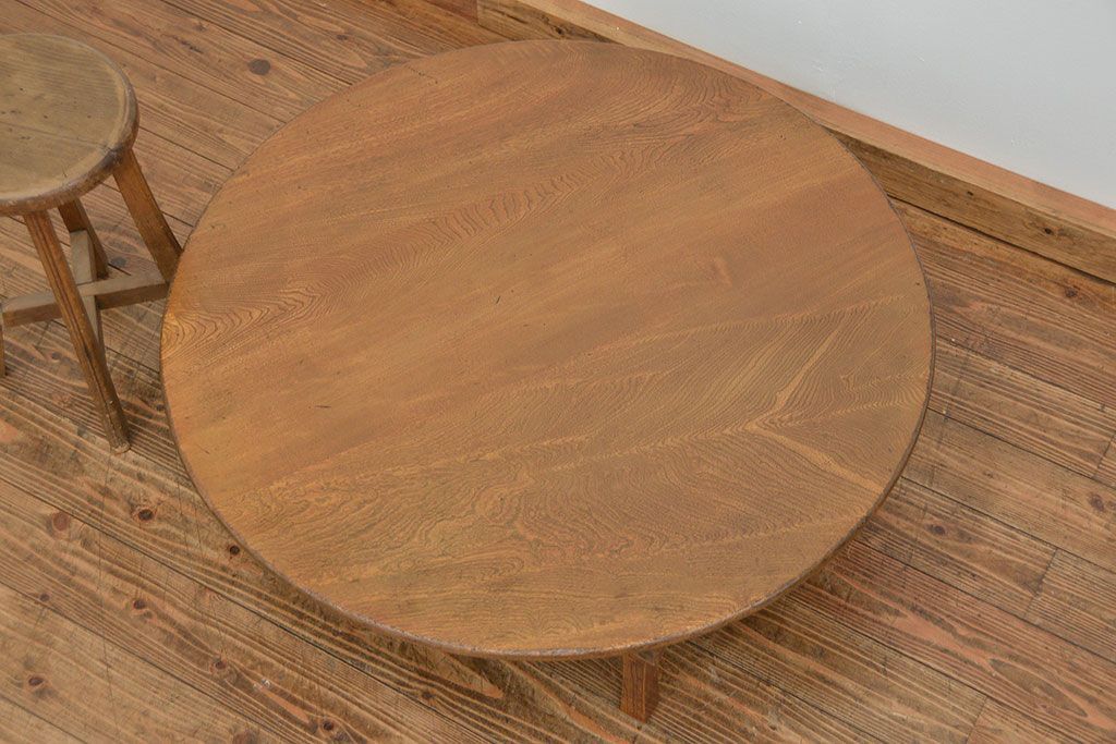 アンティーク家具 古民具・骨董 古い栓材の大振りな丸型ちゃぶ台(2)(テーブル)