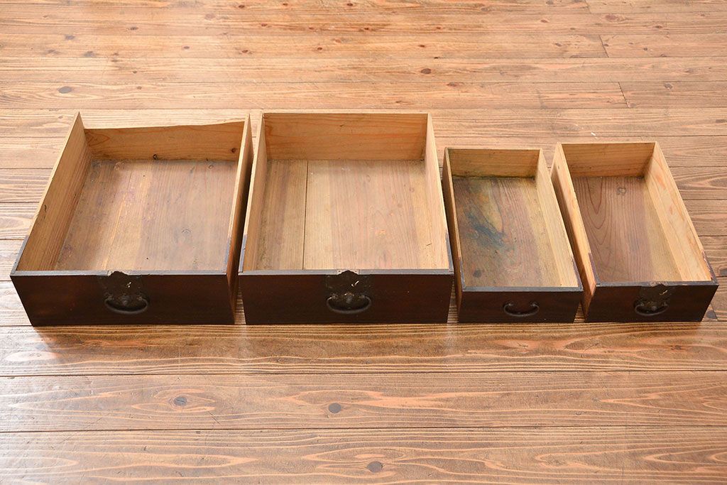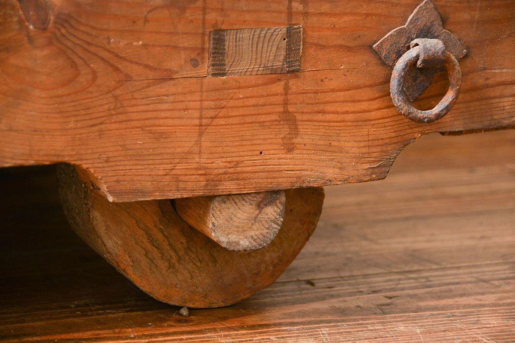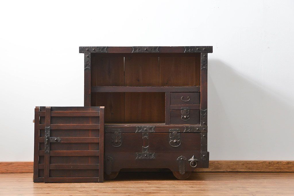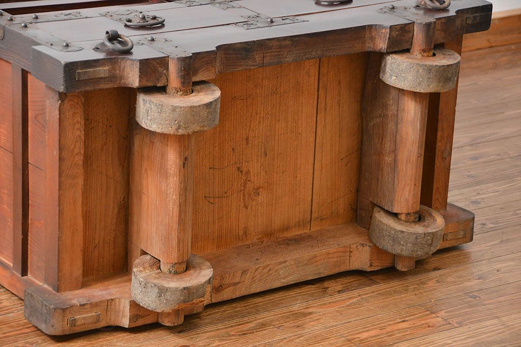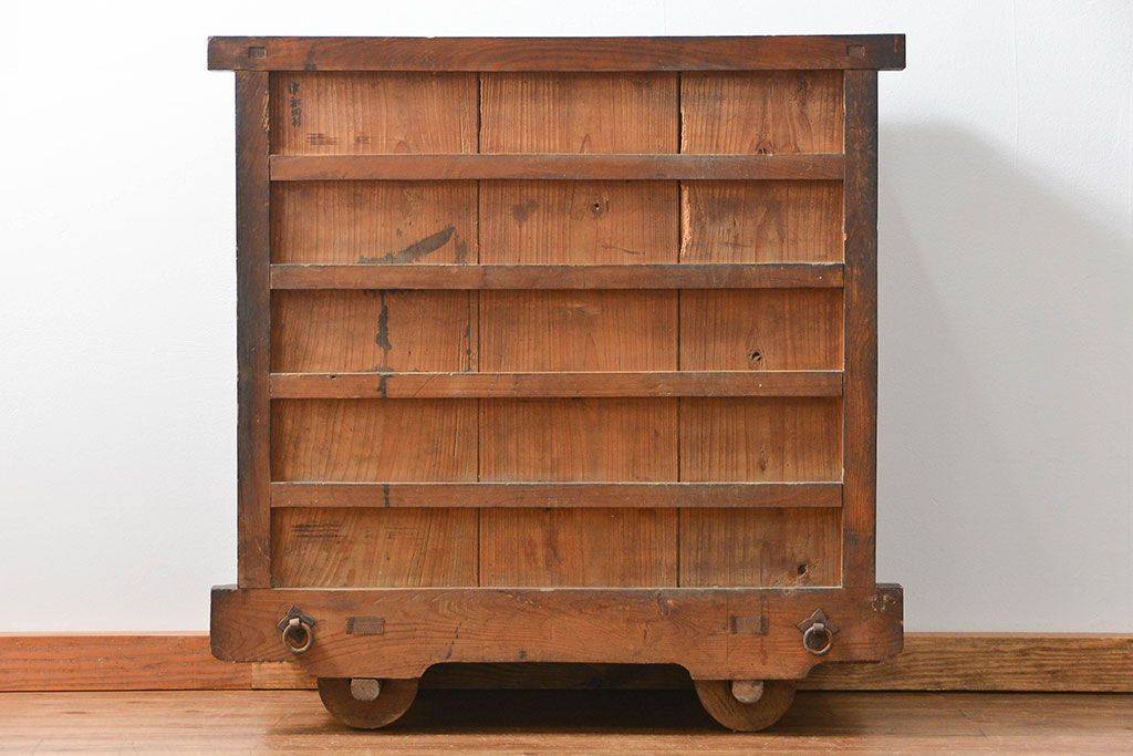 和箪笥> 船箪笥 > アンティーク家具 古民具・骨董 江戸〜明治期 前面栗材 米沢車箪笥(船箪笥、帳場箪笥)