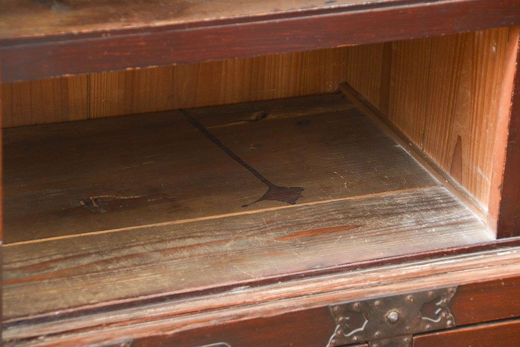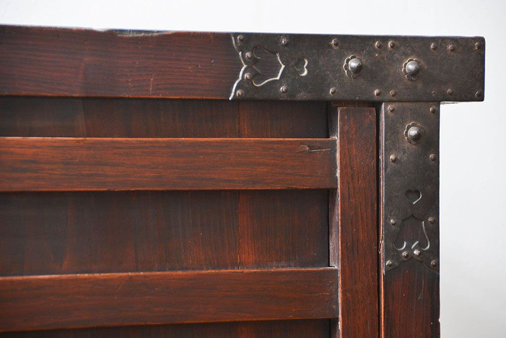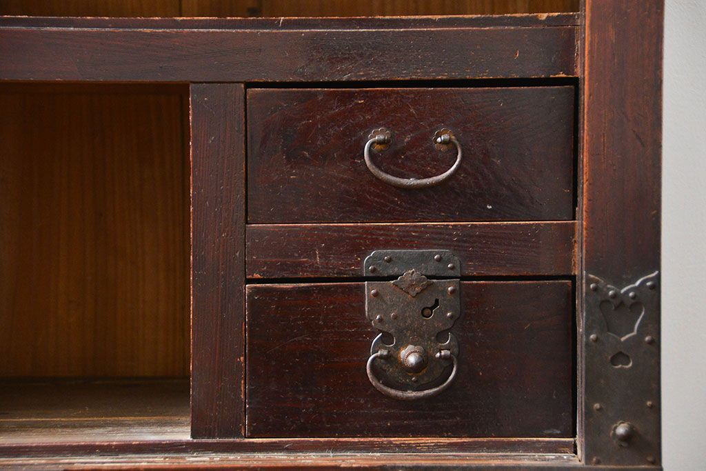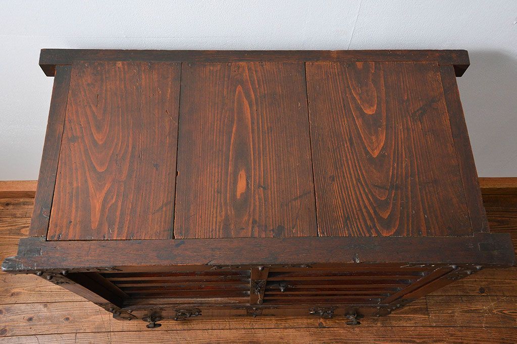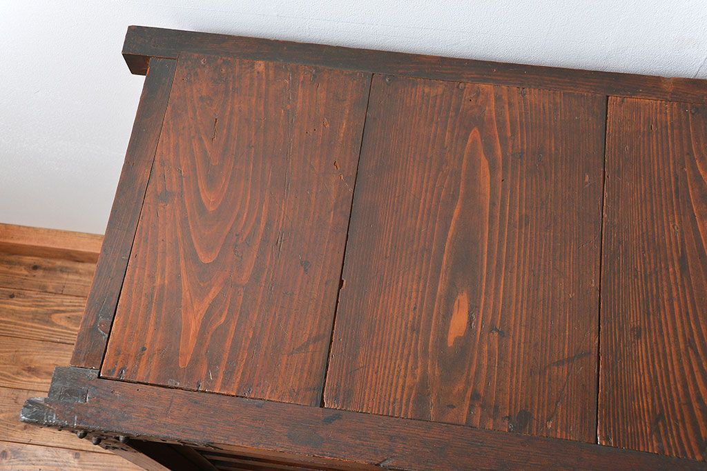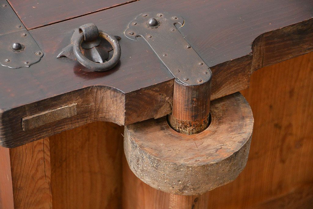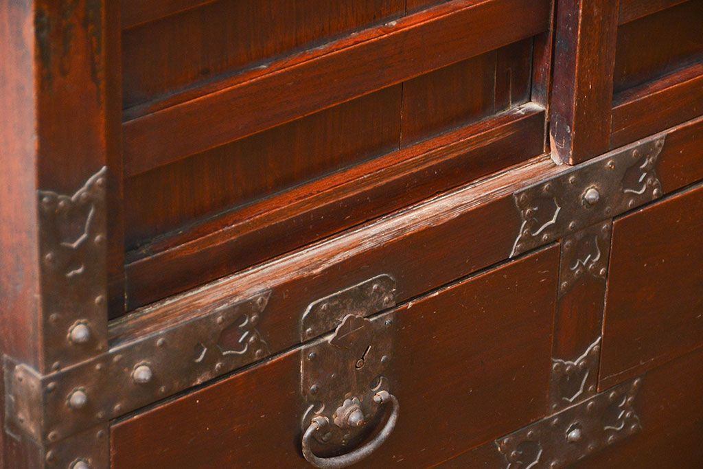 和箪笥> 帳場箪笥 > アンティーク家具 古民具・骨董 江戸〜明治期 前面栗材 米沢車箪笥(船箪笥、帳場箪笥)