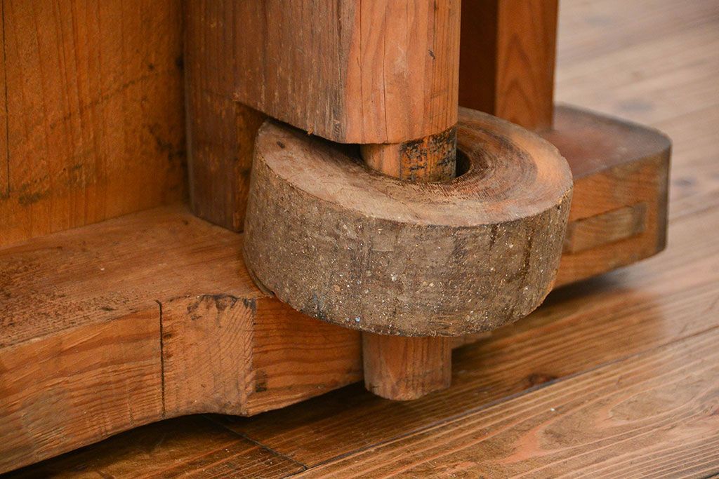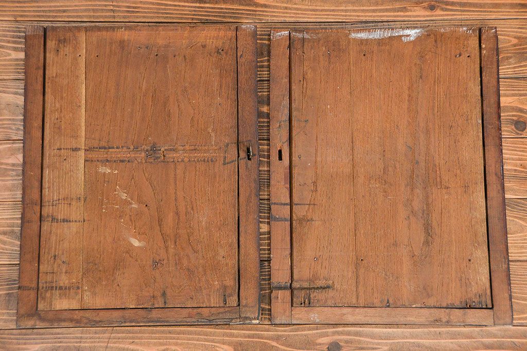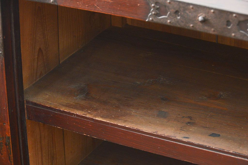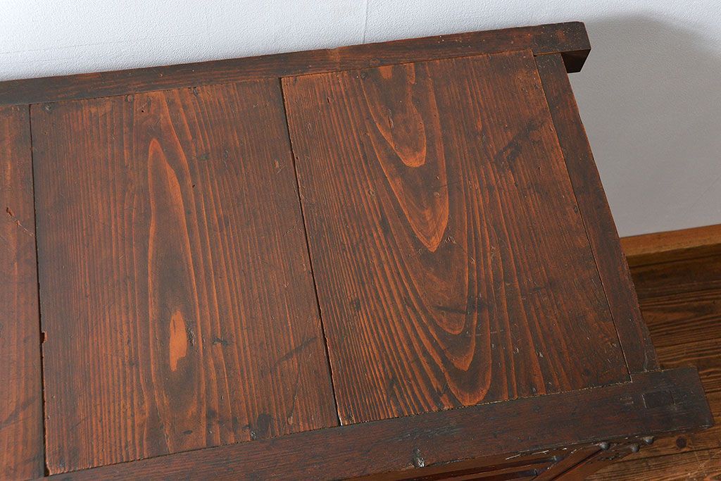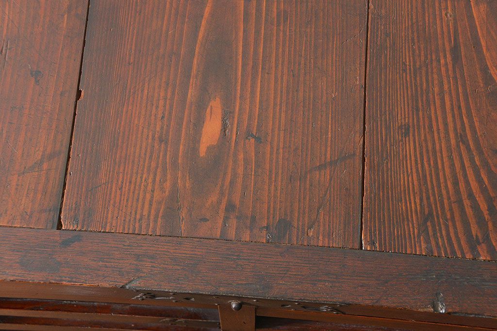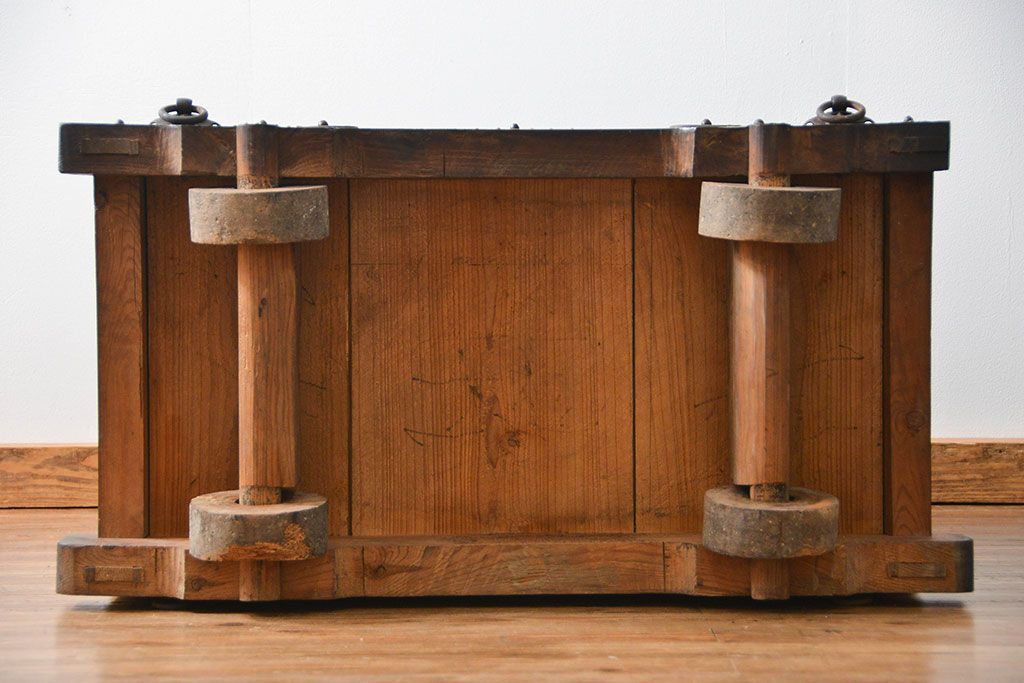 和箪笥> 帳場箪笥 > アンティーク家具 古民具・骨董 江戸〜明治期 前面栗材 米沢車箪笥(船箪笥、帳場箪笥)