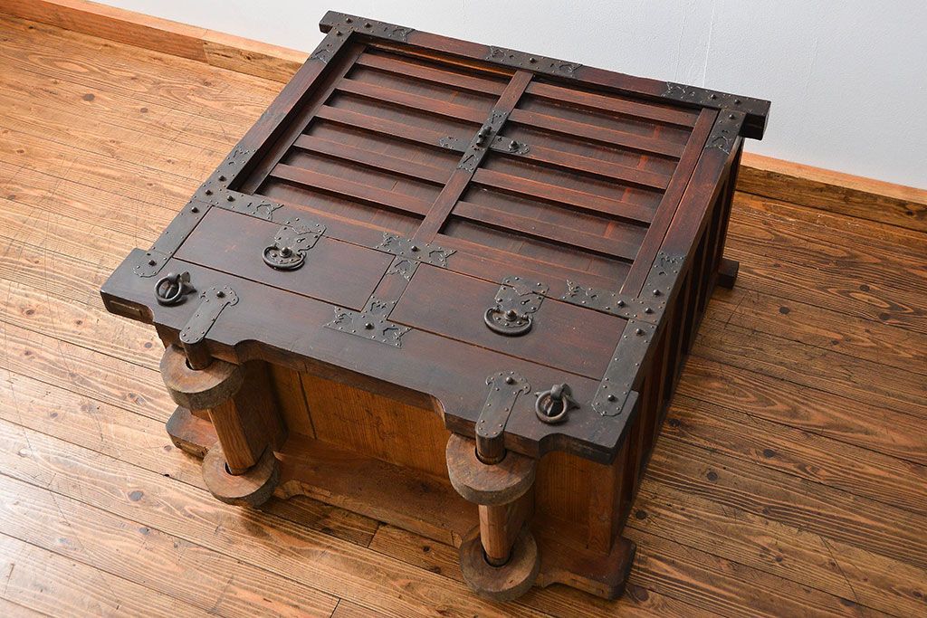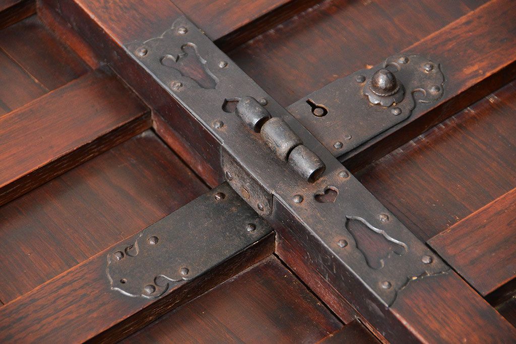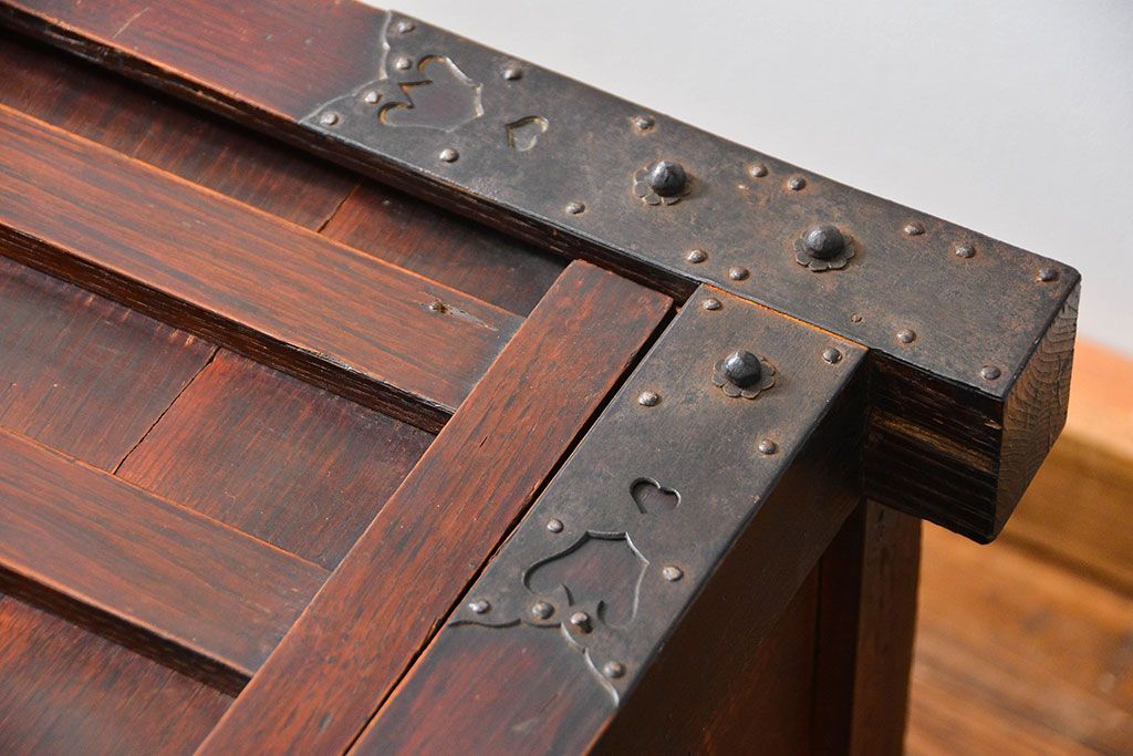 骨董・美術品 > アンティーク家具 古民具・骨董 江戸〜明治期 前面栗材 米沢車箪笥(船箪笥、帳場箪笥)