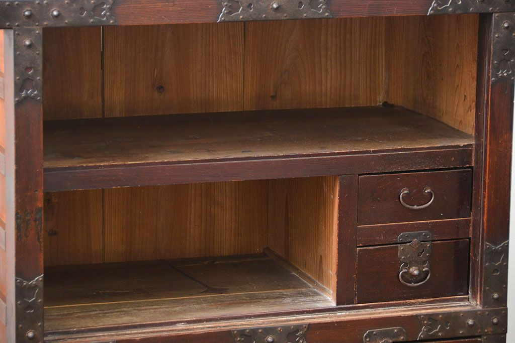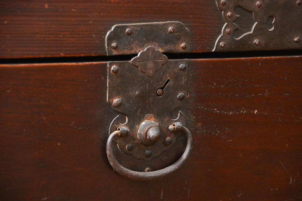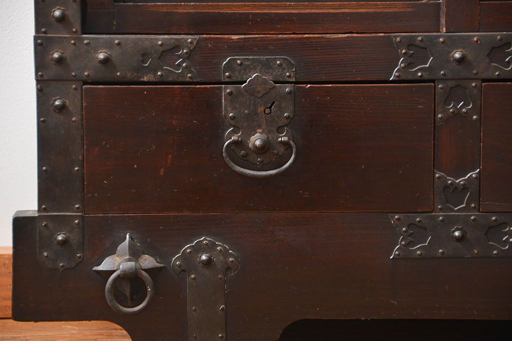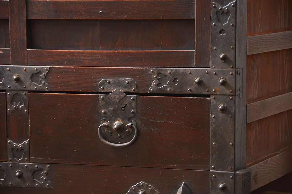 アンティーク家具 古民具・骨董 江戸〜明治期 前面栗材 米沢車箪笥(船箪笥、帳場箪笥)
